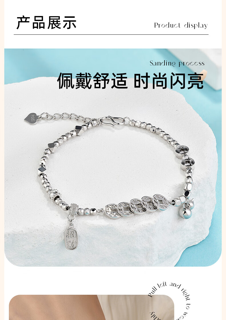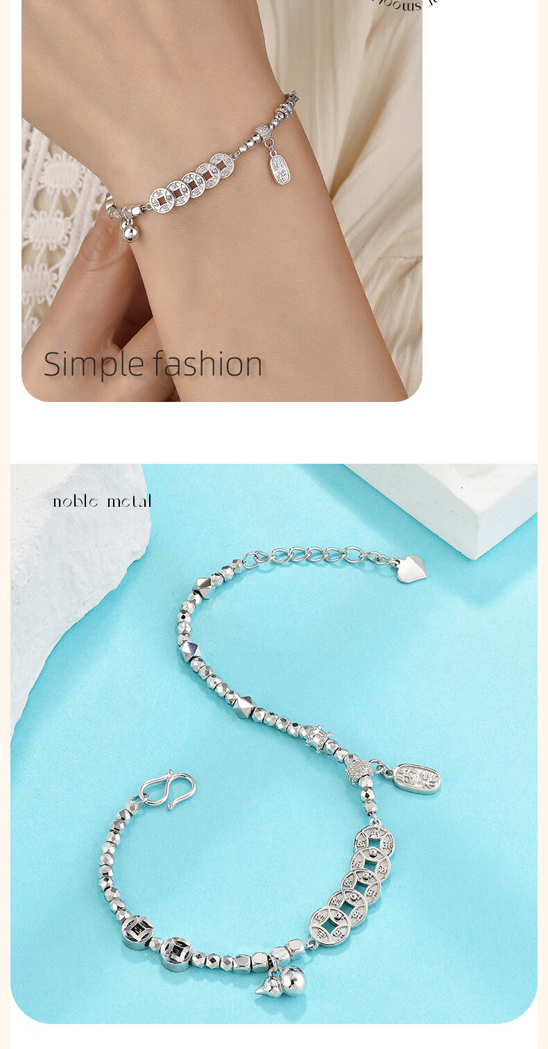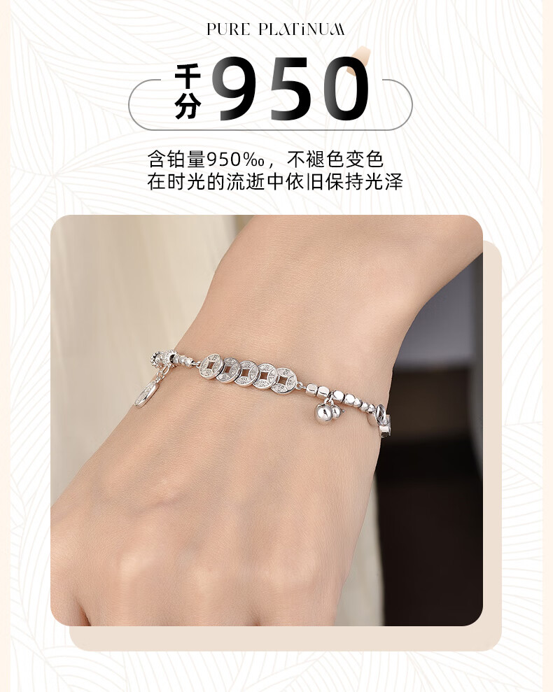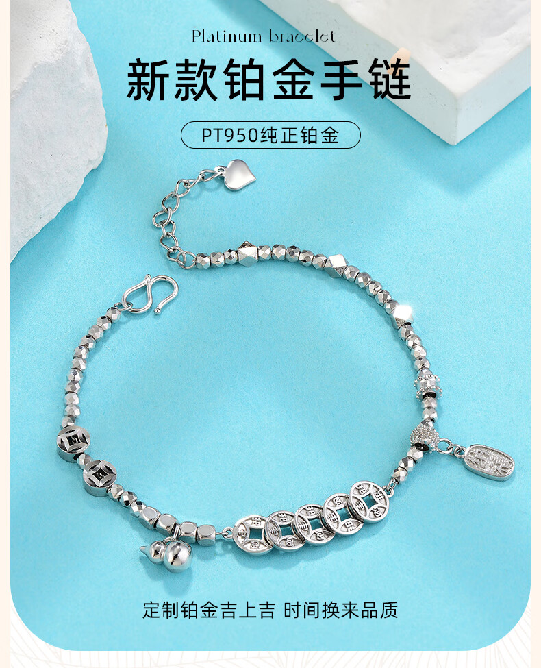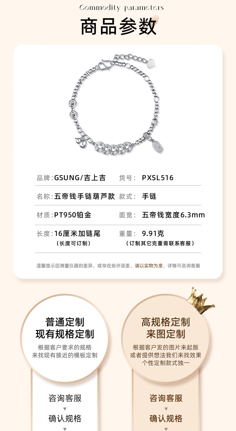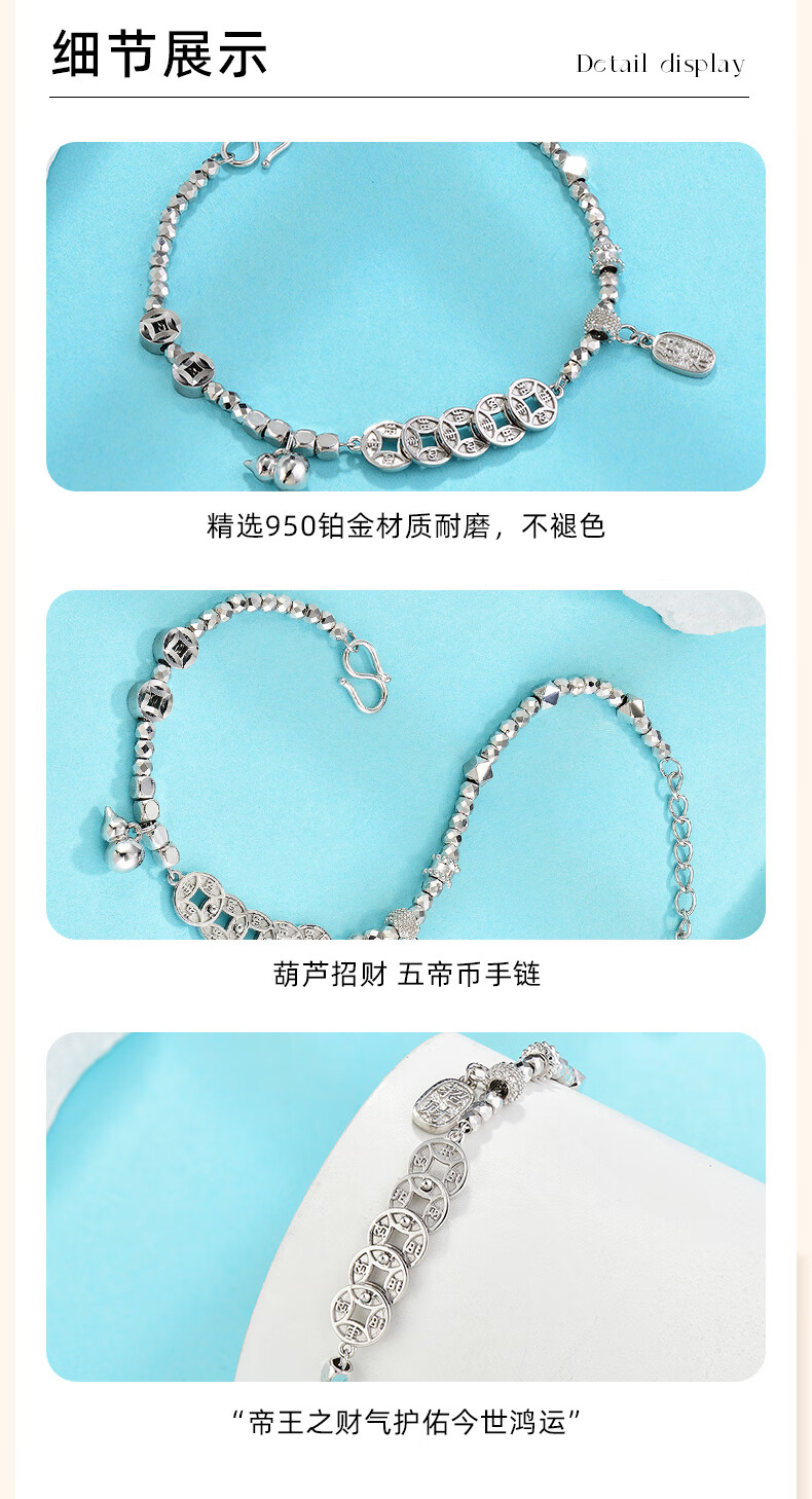GsunG Platinum PT950 Bracelet Women's Five Emperors Money Pure Platinum Bracelet Gourd Style Lucky Bracelet Birthday Gift Priced by Gram, Contact Customer Service Before Buying