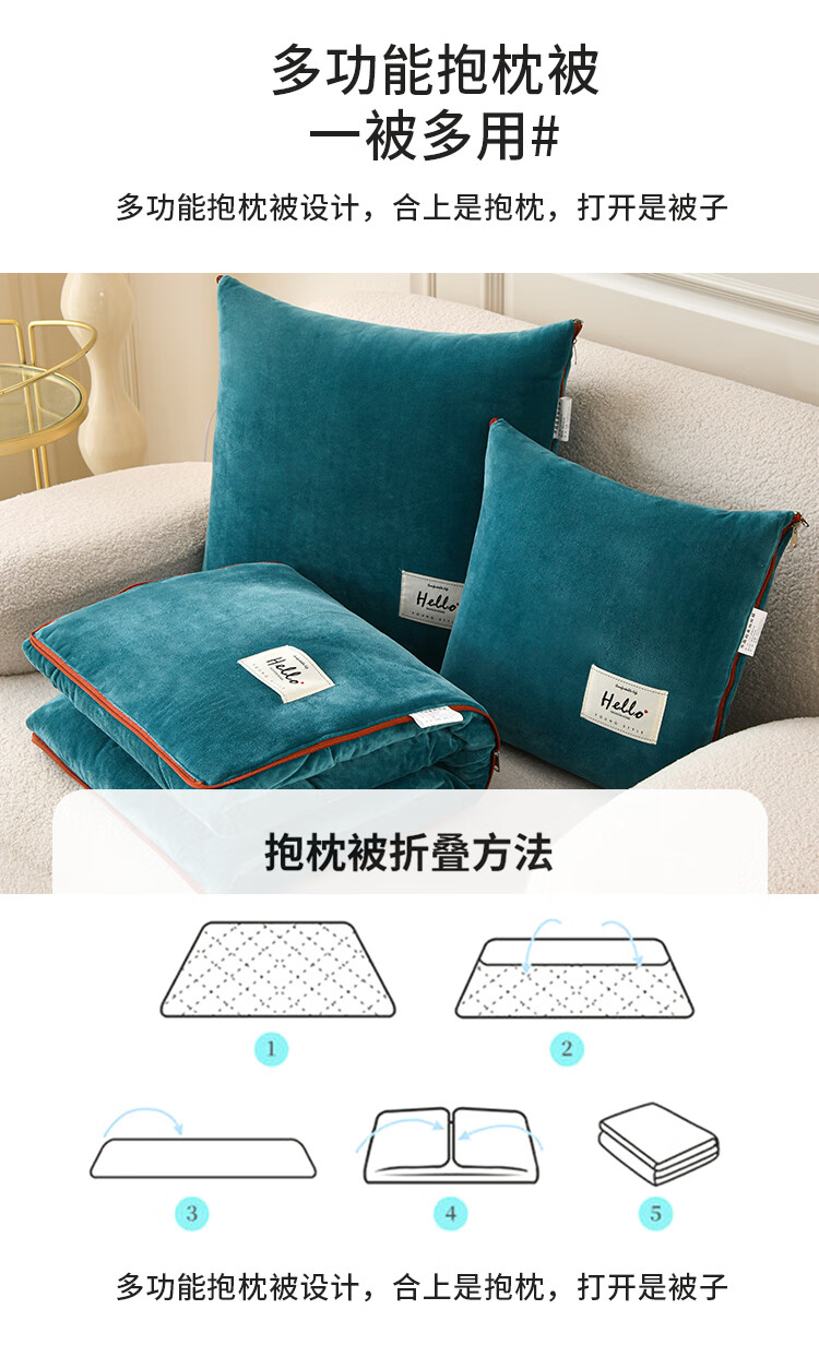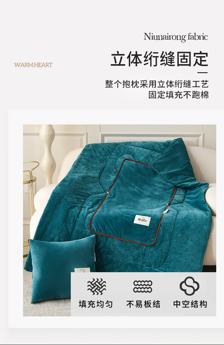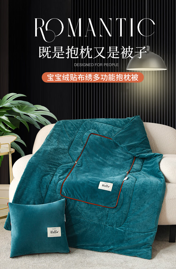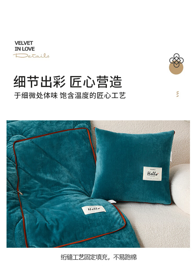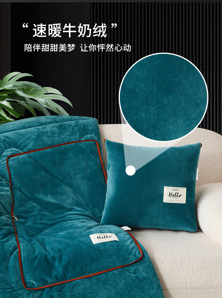 Boxingna pillow quilt dual-purpose two-in-one thickened multi-functional car cushion sofa pillow office lunch patch embroidered baby velvet-dark green 40*40cm unfold 105*145cm