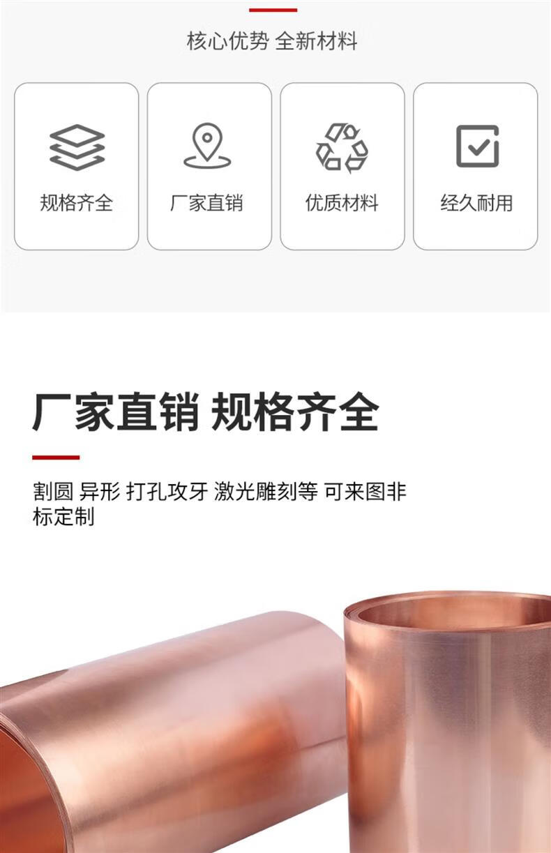 Hong carved pure copper copper sheet copper sheet copper foil copper strip copper strip 0.05 0.1 0.2 0.3 0.4 0.5mm 0.1mm*150mm*5 meters