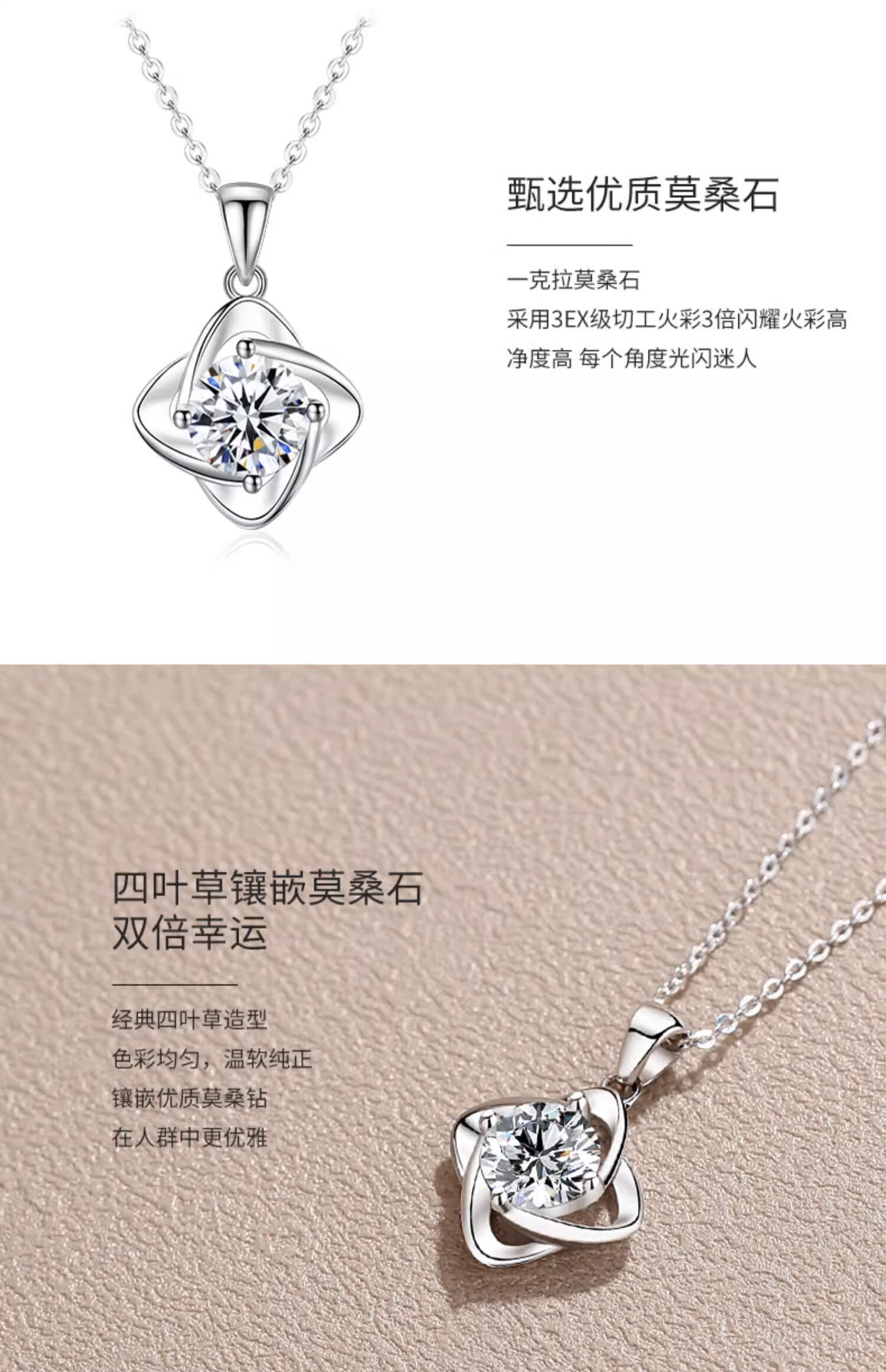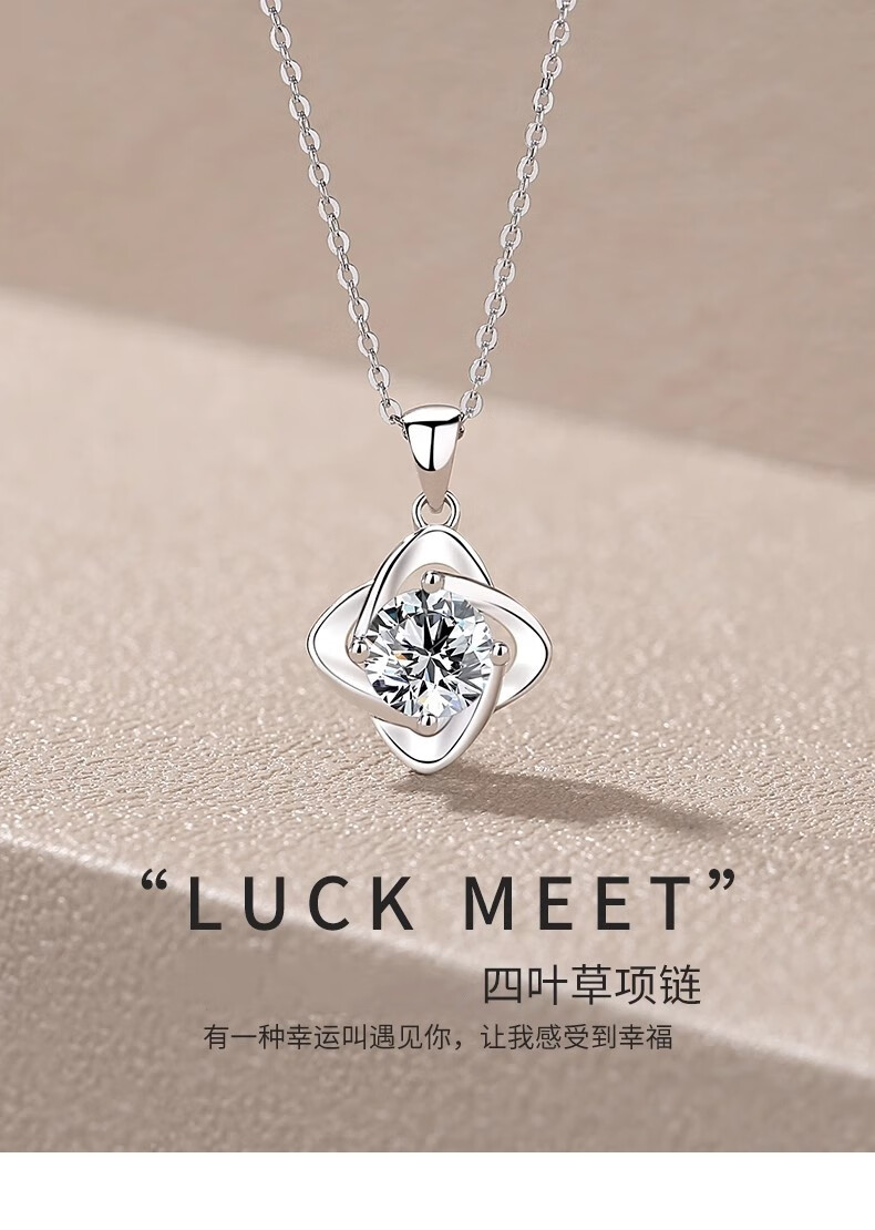 Light luxury pt950 platinum four-leaf clover necklace pendant women's clavicle chain 520 Valentine's Day gift for girlfriend and wife Light luxury model - white diamond four-leaf clover pendant + rose gift box