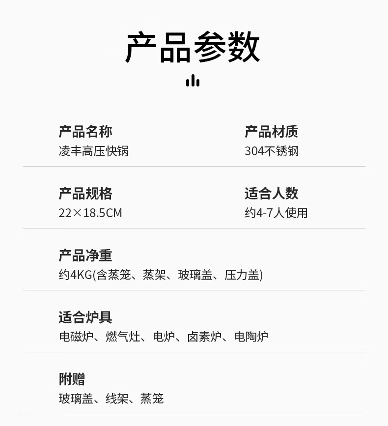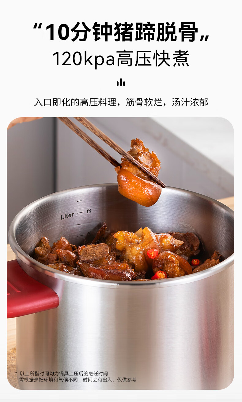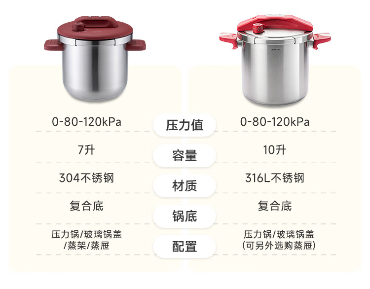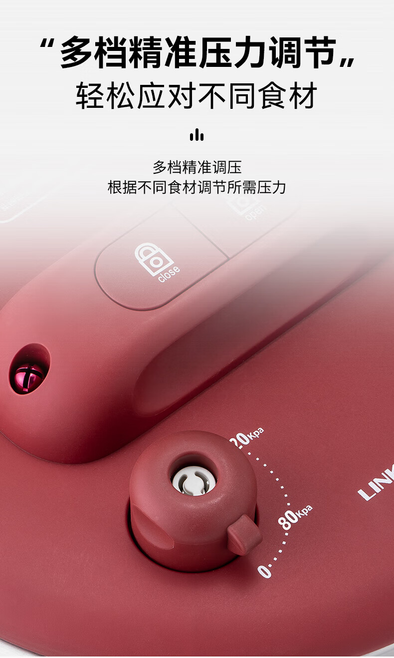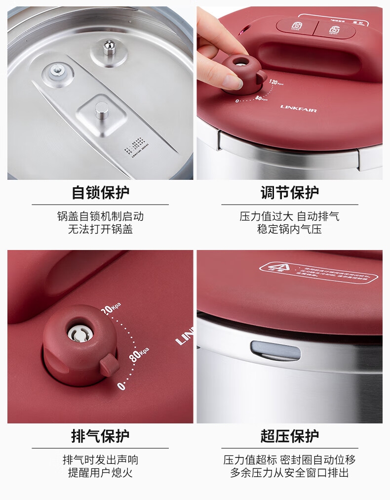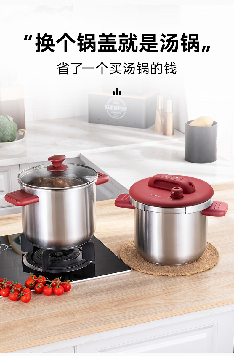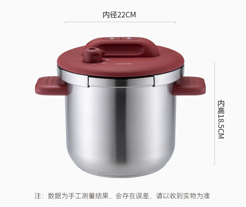 Lingfeng pressure cooker household explosion-proof pressure cooker stainless steel pressure cooker one-hand opening and closing universal gas induction cooker red with glass lid + steamer 22cm 7L