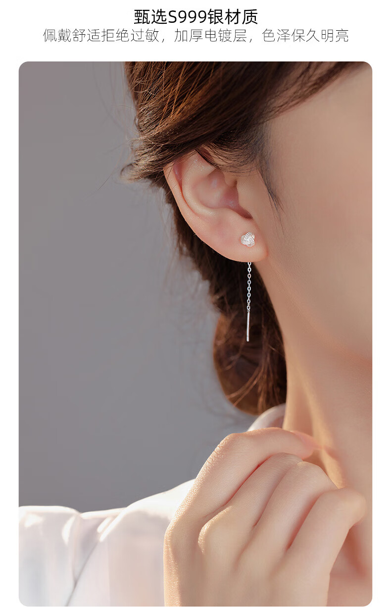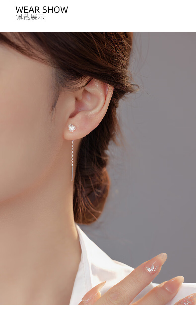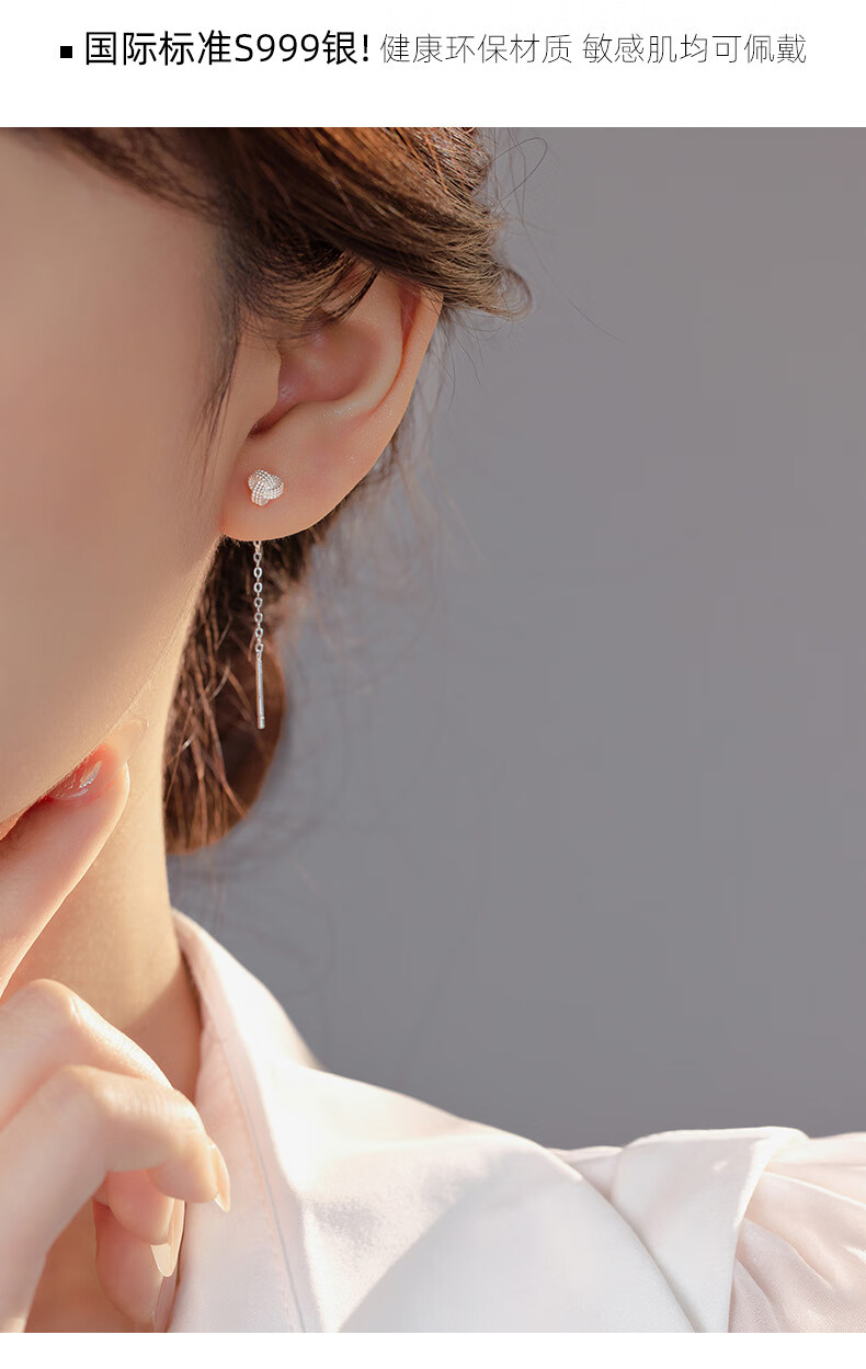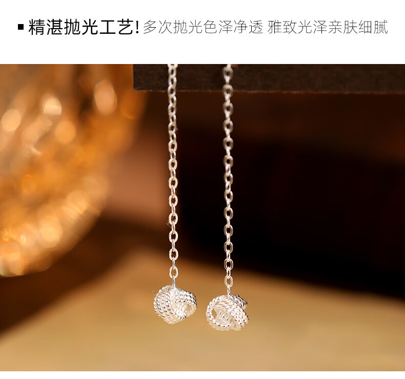 S999 Silver Ruyi Knot Ear Wire Women's Simple Niche Design Long Tassel Braided Earrings New Earrings Silver - 6mm 99 Silver