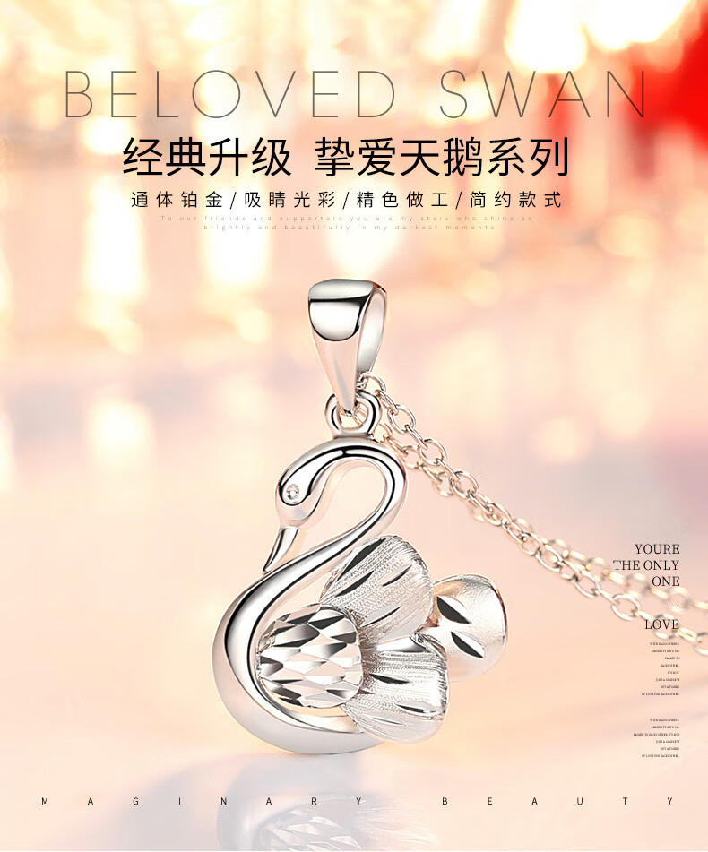 Lie Rui pt950 platinum swan pendant for women platinum light luxury clavicle necklace simple and versatile fashion pendant swan pendant 2.3-2.5 grams + free silver chain