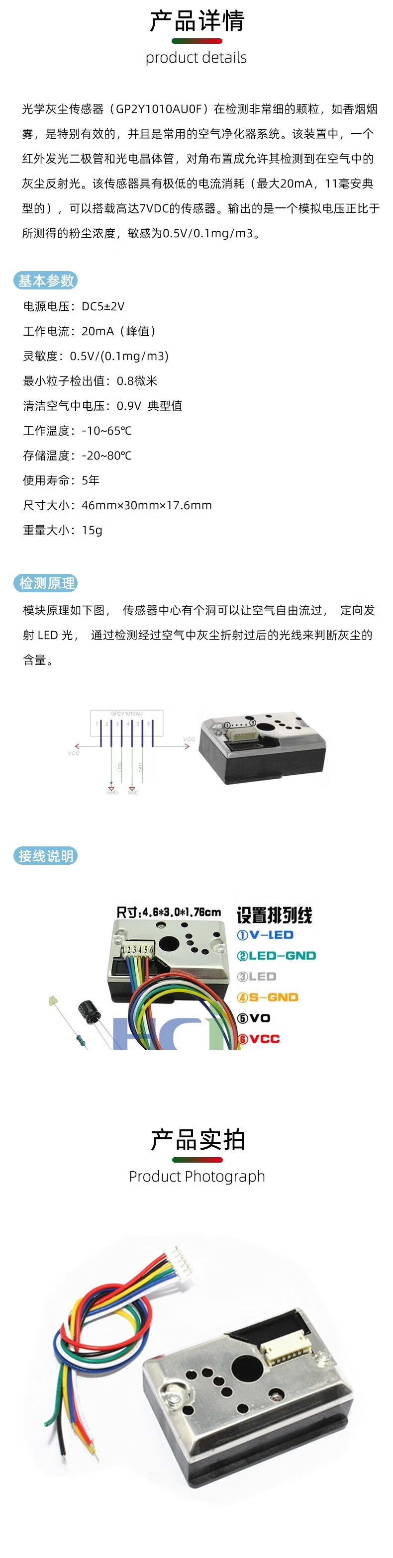 Dengshitang PM2.5 sensor GP2Y1014AU dust sensor dust sensor replaces GP2Y1010AU0F GP2Y1014AU dust sensor