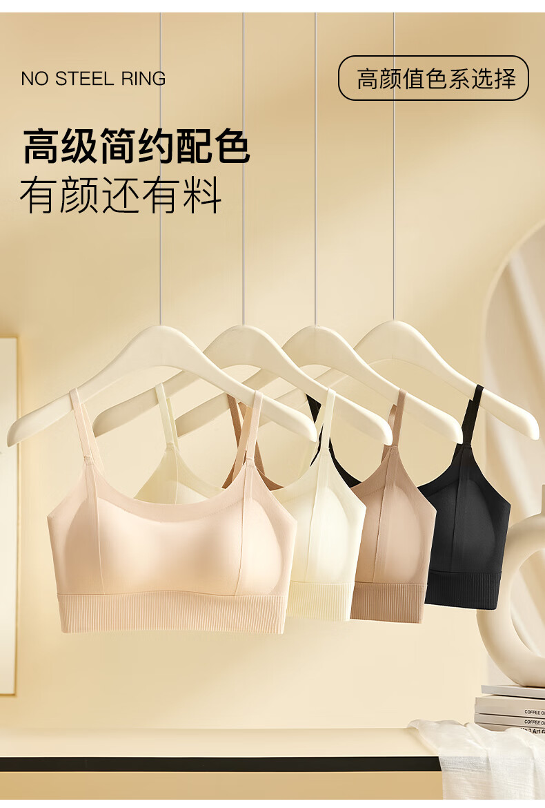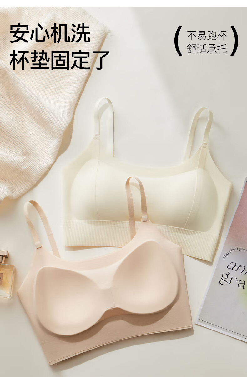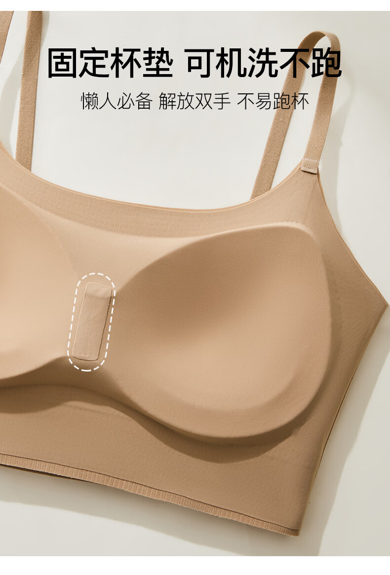 Yalu Girl Seamless Beautiful Back Camisole Underwear Cartoon Chest Integrated Fixed Cup Thickened Underwear Small Breast Shows Big Bandeau Khaki M 80-115Jin Jin equals 0.5kg Thickened 3cm