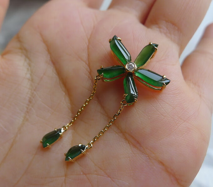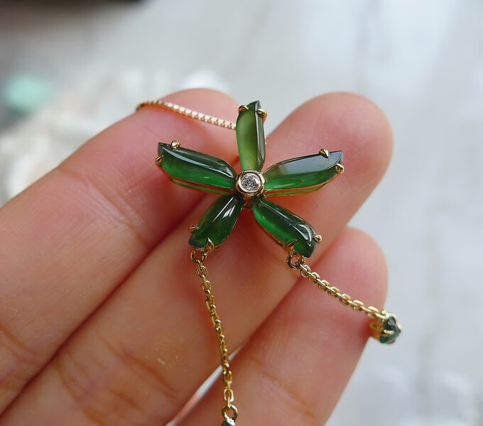 Guran 2025 new glass old green luminous sunflower pendant 18k gold diamond inlaid natural A goods