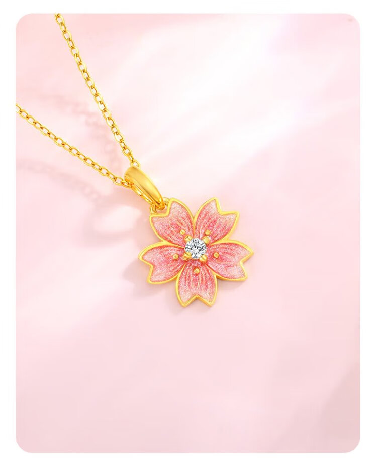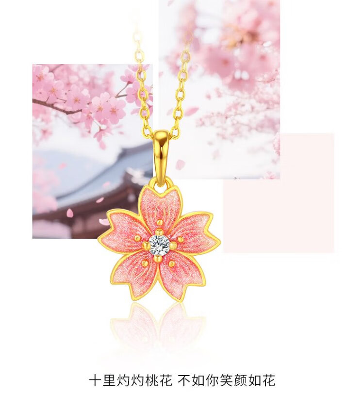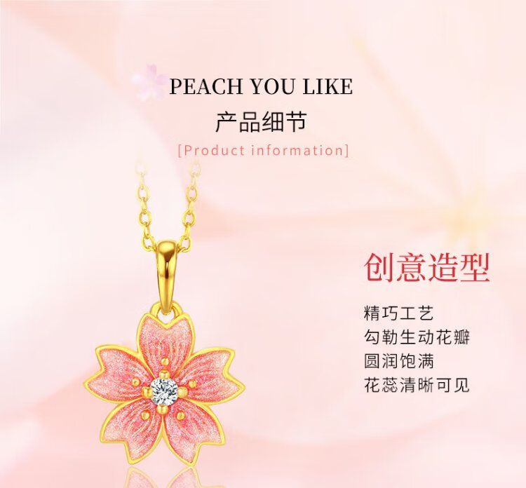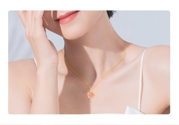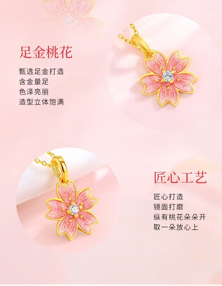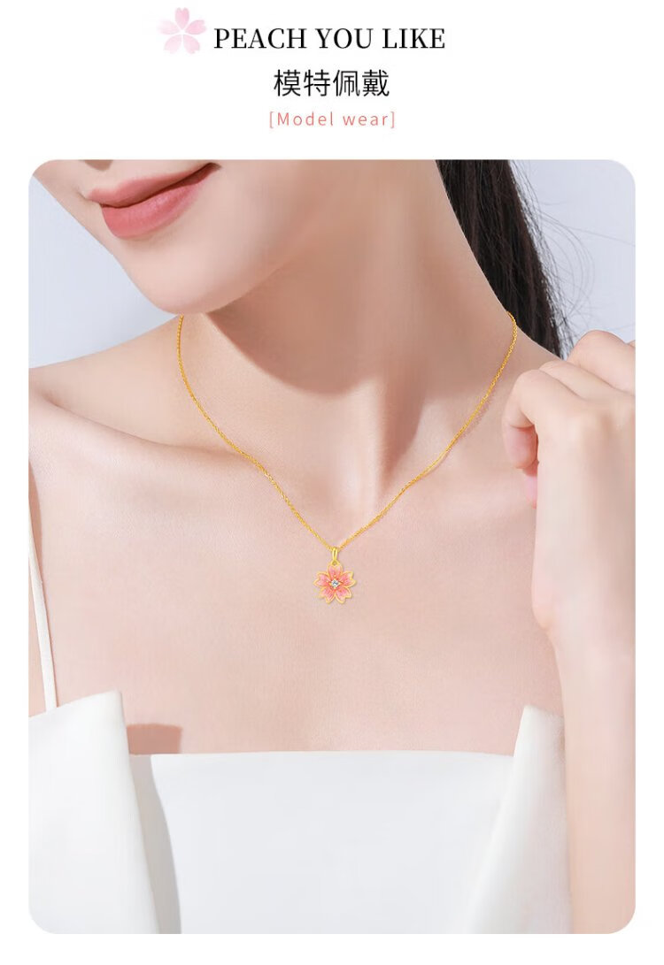 Chinese jewelry gold necklace female peach blossom pure gold pendant Taozhi Yaoyao gives wife a birthday gift and gives girlfriend a gold necklace gold pendant about 1.05g free silver chain Jingsuda rose gift box