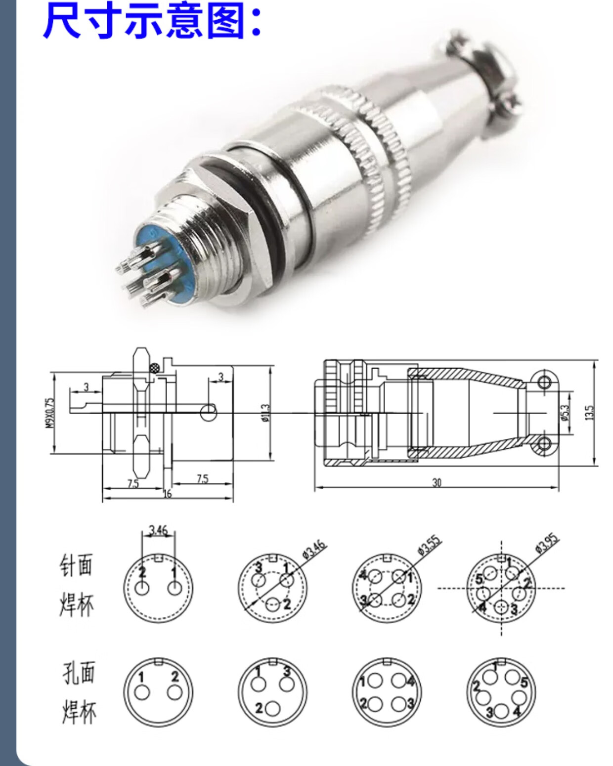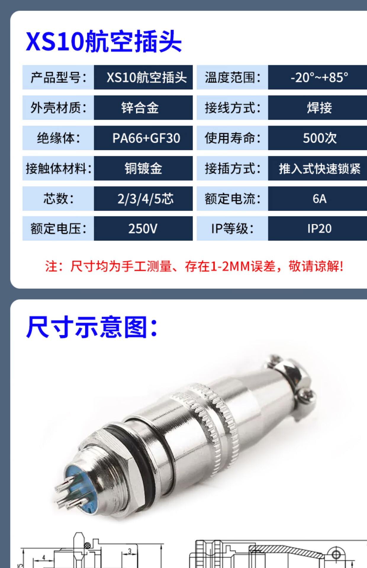 DZQJ aviation plug socket small aviation plug XS8/9/10JK-2/3/4/5 core pin male and female connector XS9-4P male + female (1 set) No Specifications