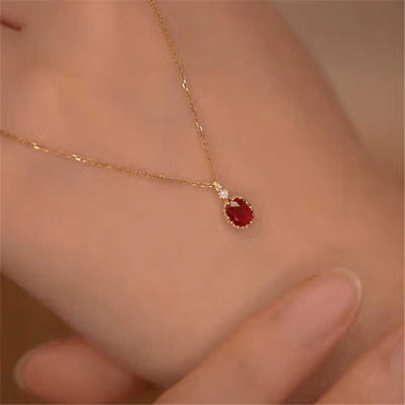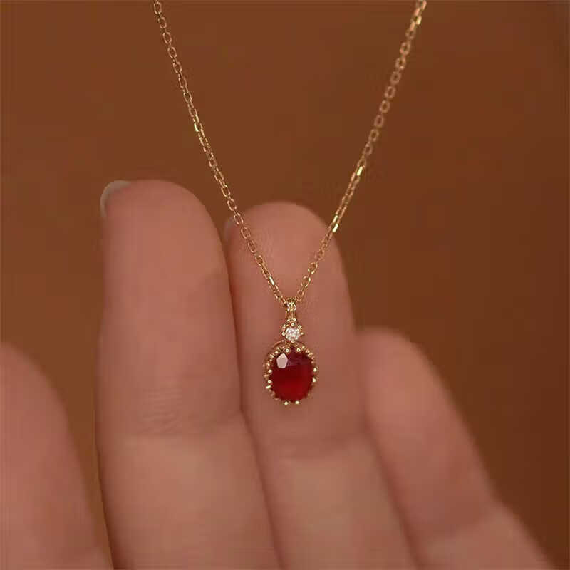 Hunter 18k gold inlaid pigeon blood stone necklace for women, French retro, compact, exquisite, light luxury, niche clavicle chain, red, choose bare stone for customization, contact customer service