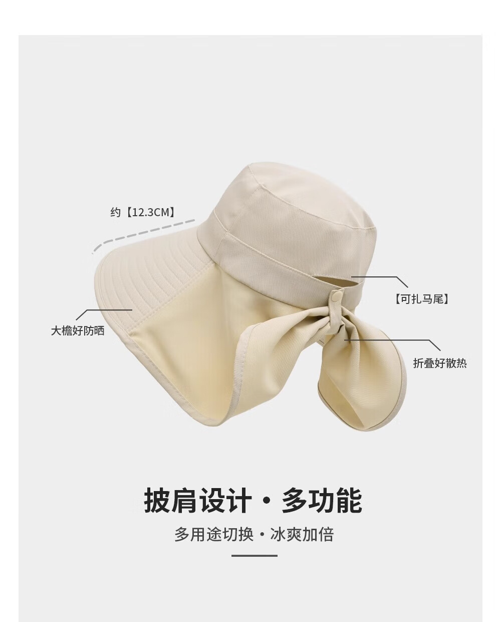 Pdmcms seaside sun protection hat women's large brim summer sun hat neck protection integrated sun hat covering face and neck beach hat large brim sun hat off-white full face sun protection