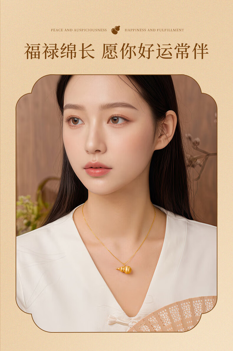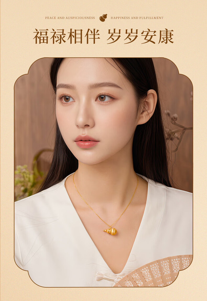 Chinese gold gourd pendant gold necklace for women 18K gold brushed gourd inlaid birthday gift for girlfriend and wife for wedding auspicious gourd pendant with silver chain