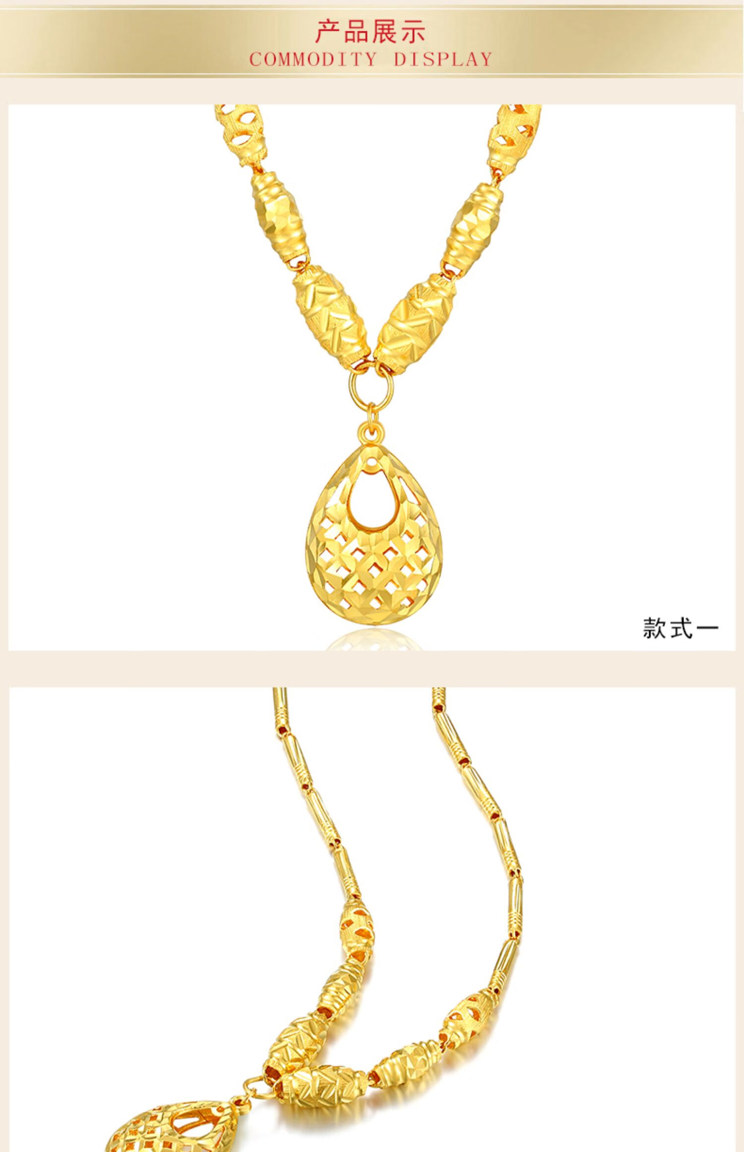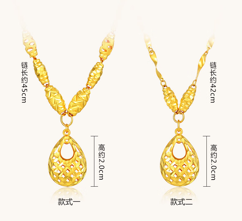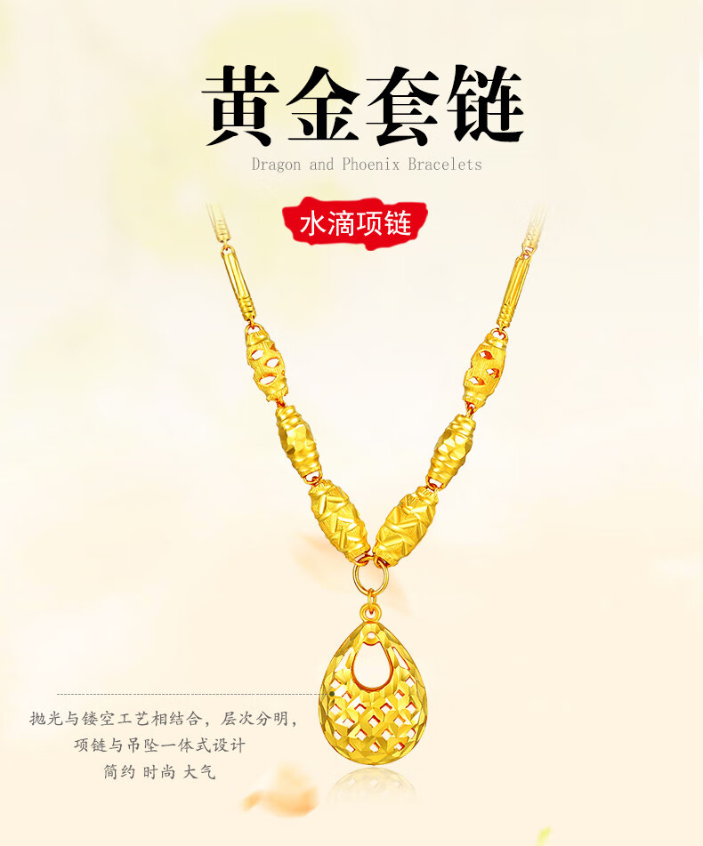Guran gold necklace 999 pure gold chain brand mother-in-law mother-in-law gift water drop necklace wedding engagement plain gold chain for women style one water drop shape about 11.5 grams