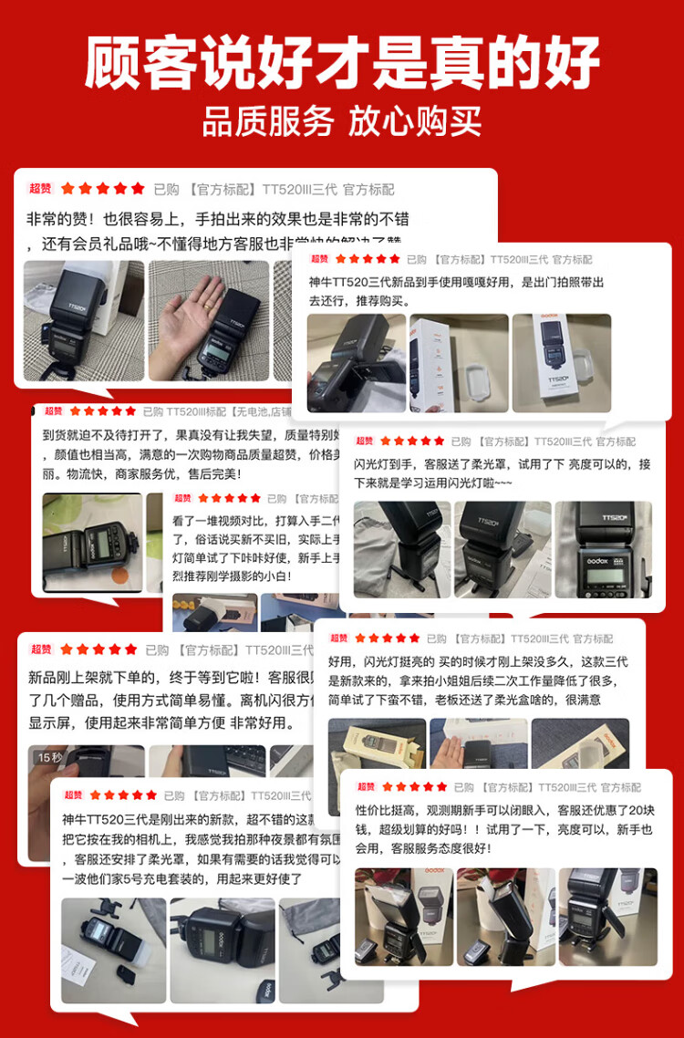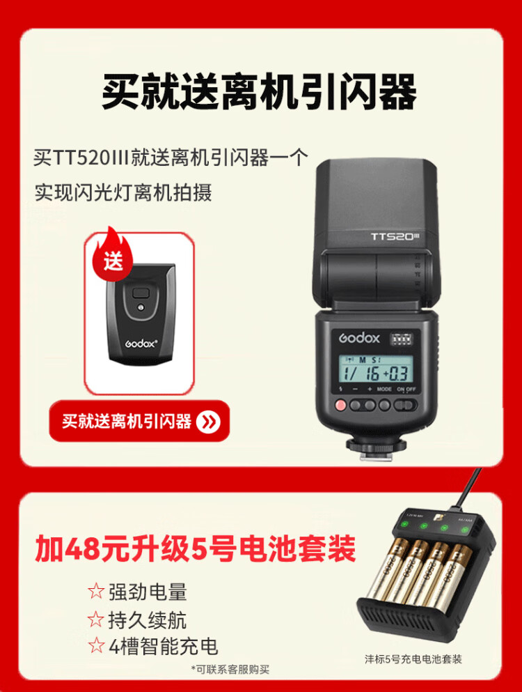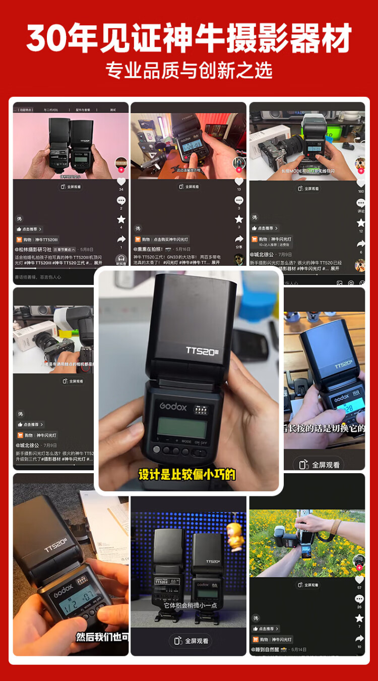 Godox tt520III third generation flash photography fill light shooting dedicated portable camera SLR camera top flash external off-camera hot shoe Canon Fujifilm Sony Nikon universal JD Logistics TT520III third generation <hot selling> official standard (comes with flash trigger)
