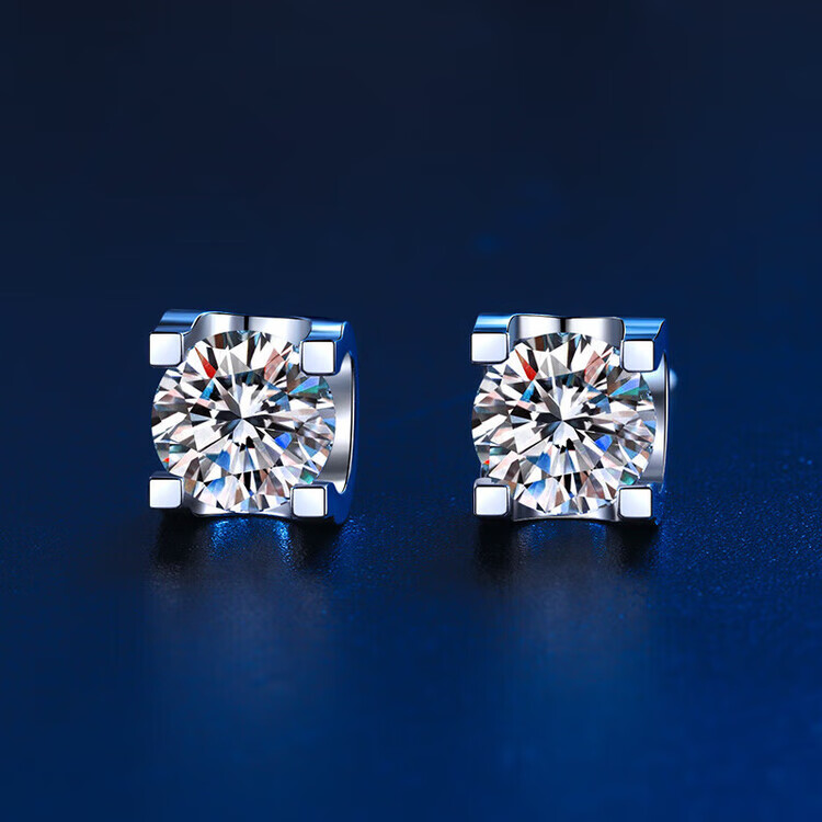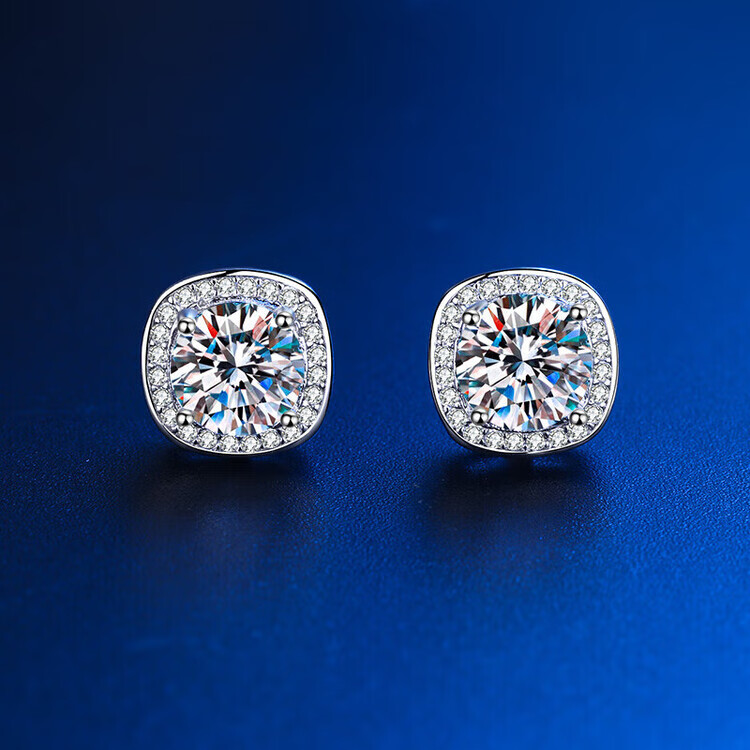 Genuine platinum pt950 earrings, D color moissanite earrings, snowflake diamond bull head earrings, women's earrings gift, 1 carat moissanite square package earrings, light luxury style