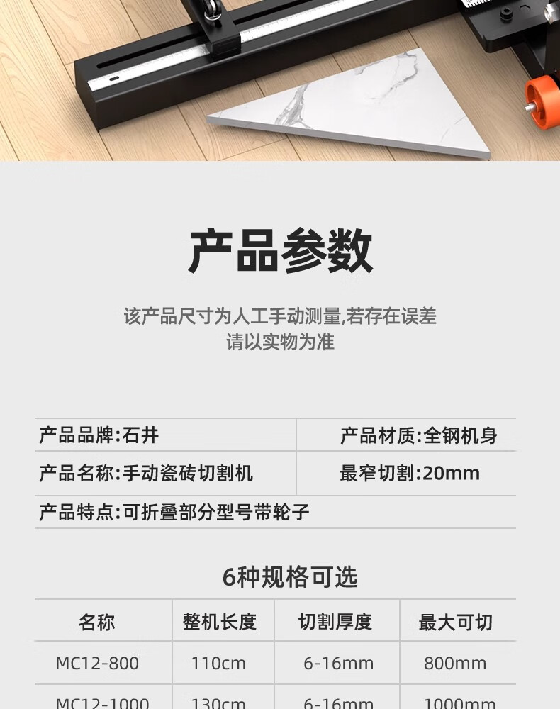 Ishii manual push knife tile broach cutting push knife manual masonry knife manual multi-functional desktop floor tile sliding knife cutting tiles cutting 80cm Ishii 2025 new MC13 Ishii official flagship store worry-free after-sales