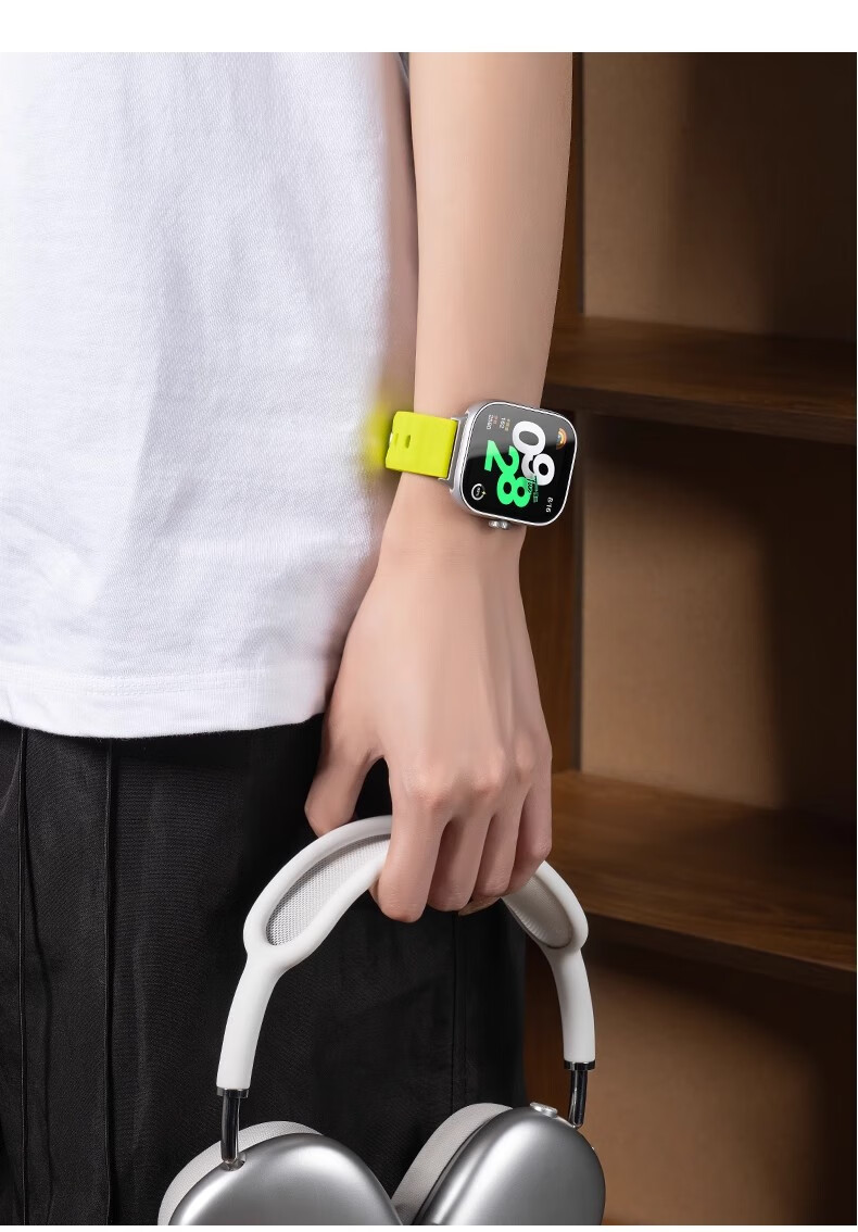 Noci is suitable for Xiaomi Band 9pro watch strap silicone 8pro Redmi watch6/5 mobile phone dust plug fluorescent green newly upgraded silicone suitable for Xiaomi Band 9Pro/8pro black connector