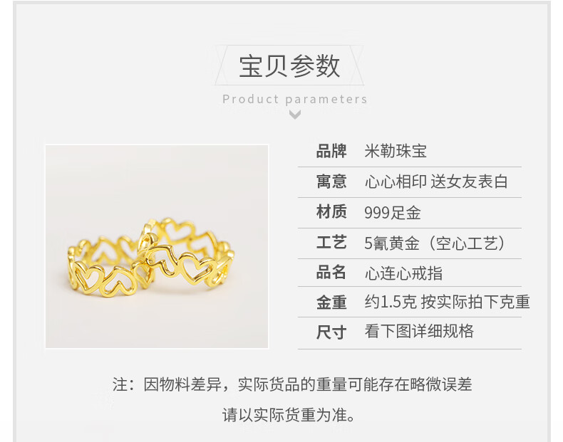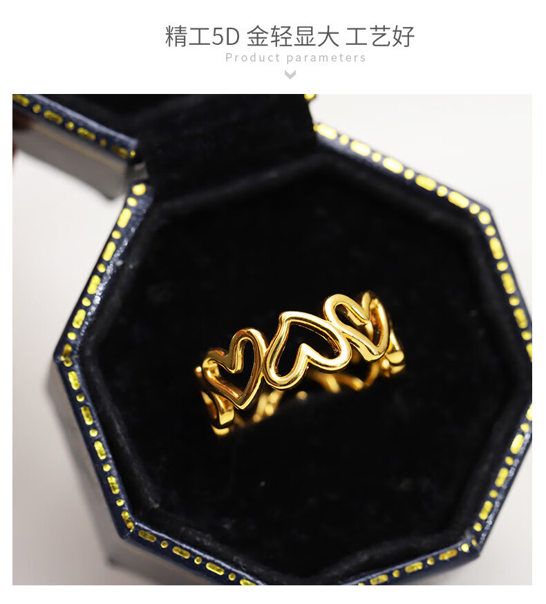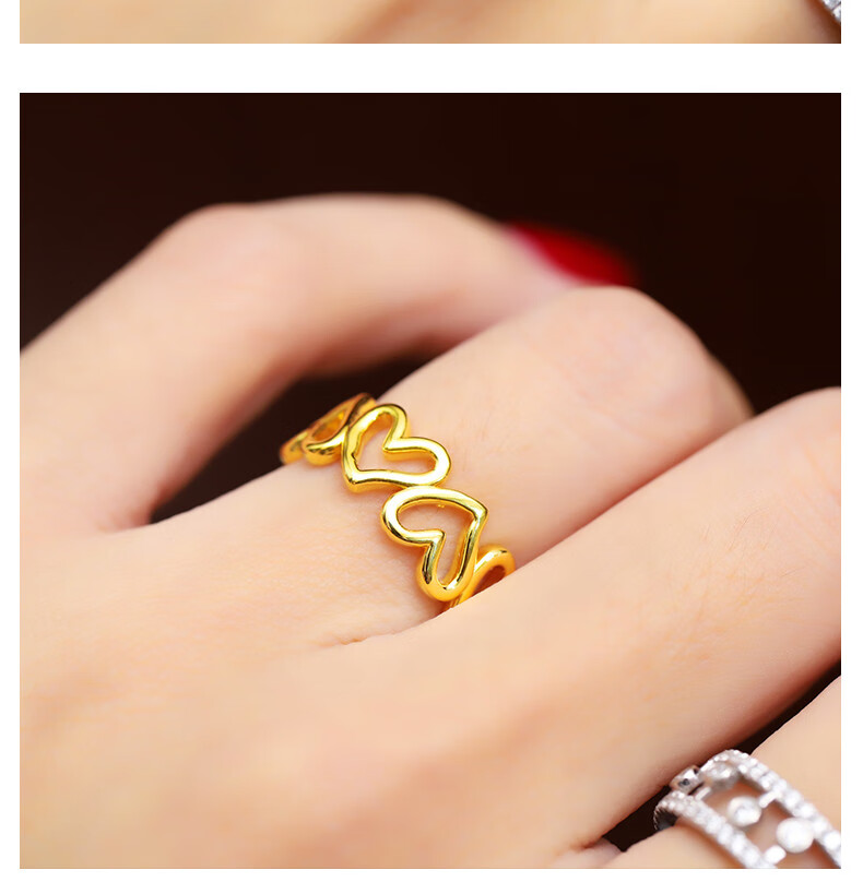Guran 5d gold ring women's heart-shaped pure gold cyanide-free glossy small peach heart ring gold ring heart-to-heart jewelry 10# 1.65g in stock