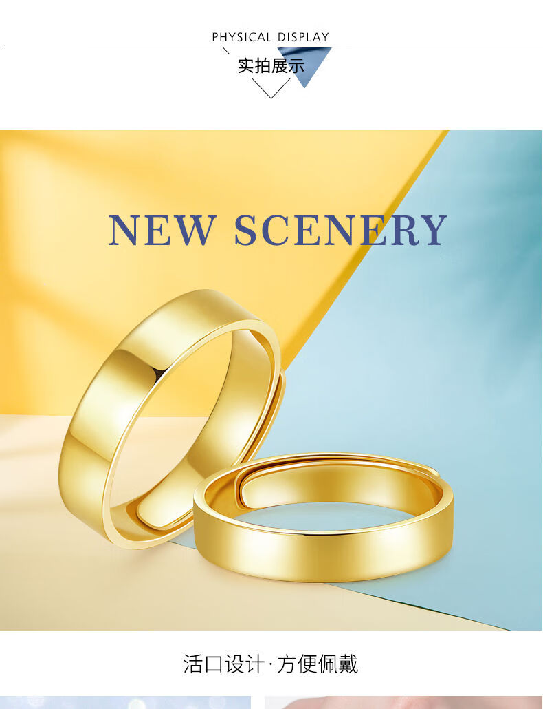 Guran gold ring pure gold 999 light plate living ring couple ring 2025 new style gift choice for men 5.44g