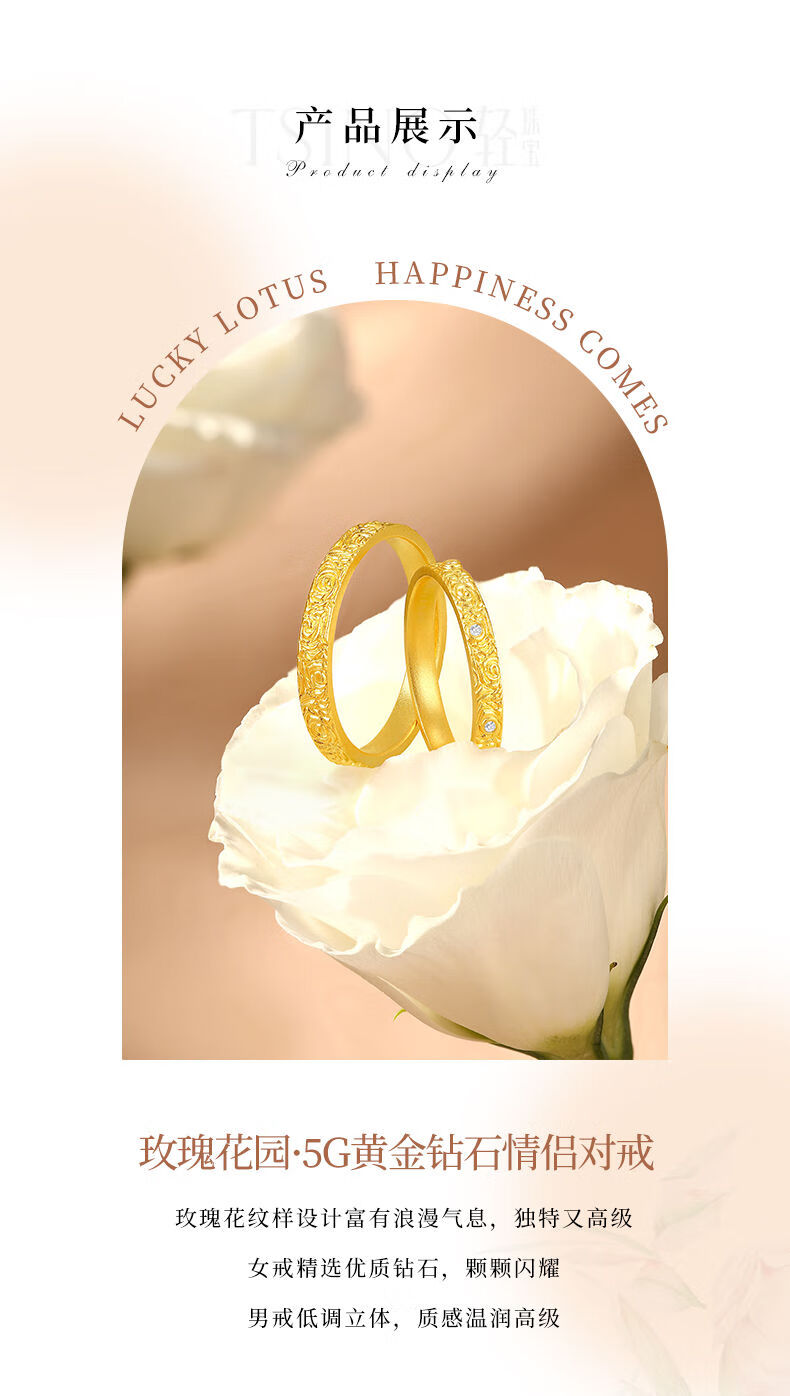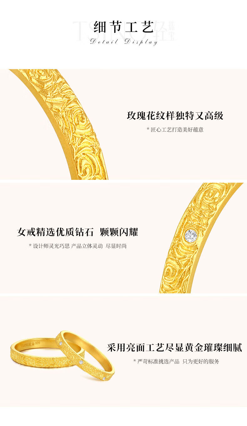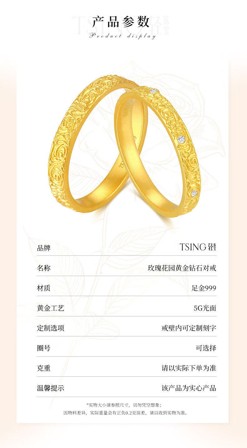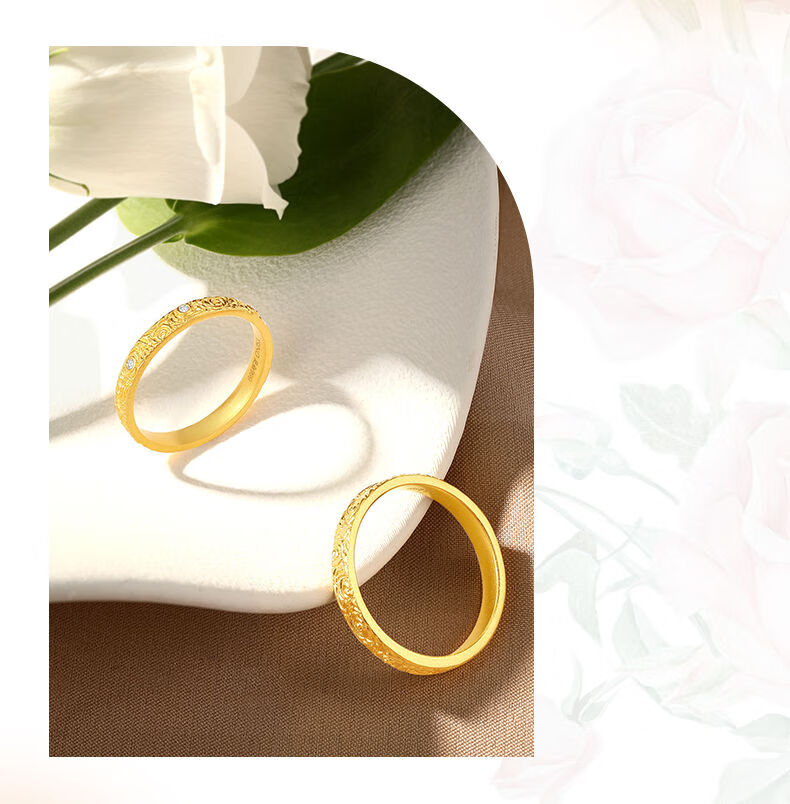 Guran 999 Pure Gold Cultured Diamond Gold Couple Ring Gift 2025 New Style Choice for Gifts Hot Style Replenishment in Stock Pre-Order as Fast as 48 Hours