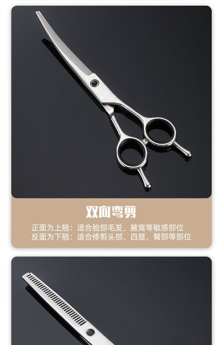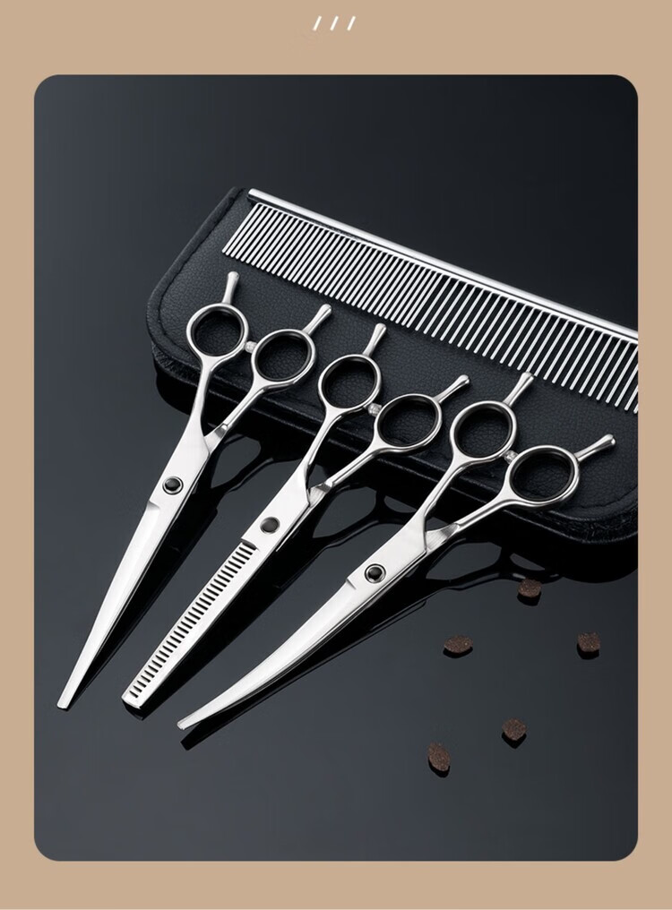 GERTHRON German Pet Grooming Scissors for Dog Teddy Dog Hair Cutting and Trimming Special Barbering and Hairdressing Curved Scissors 7-inch Double Tail Curved Scissors + Double Tail Straight Scissors + Comb + Scissor Cloth