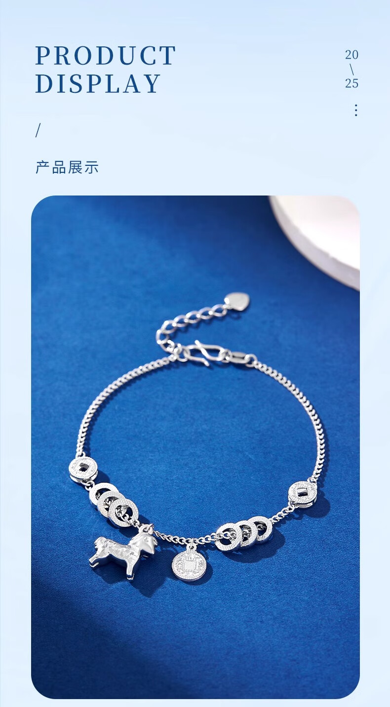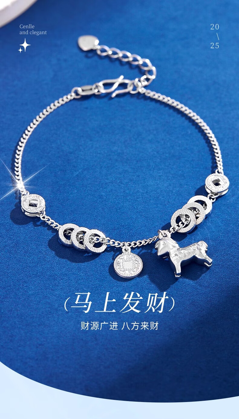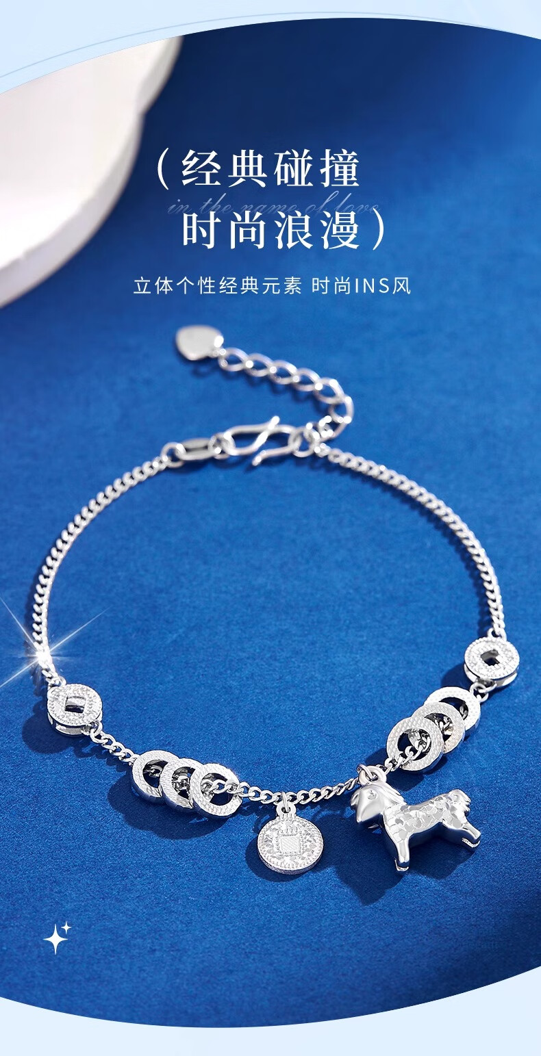 CHINA GOLD PT950 Platinum Lucky Bracelet Get Rich Instantly Platinum Bracelet Practical Valentine's Day Birthday Gift for Girls PT950 Platinum Get Rich Bracelet Approximately 9.9g