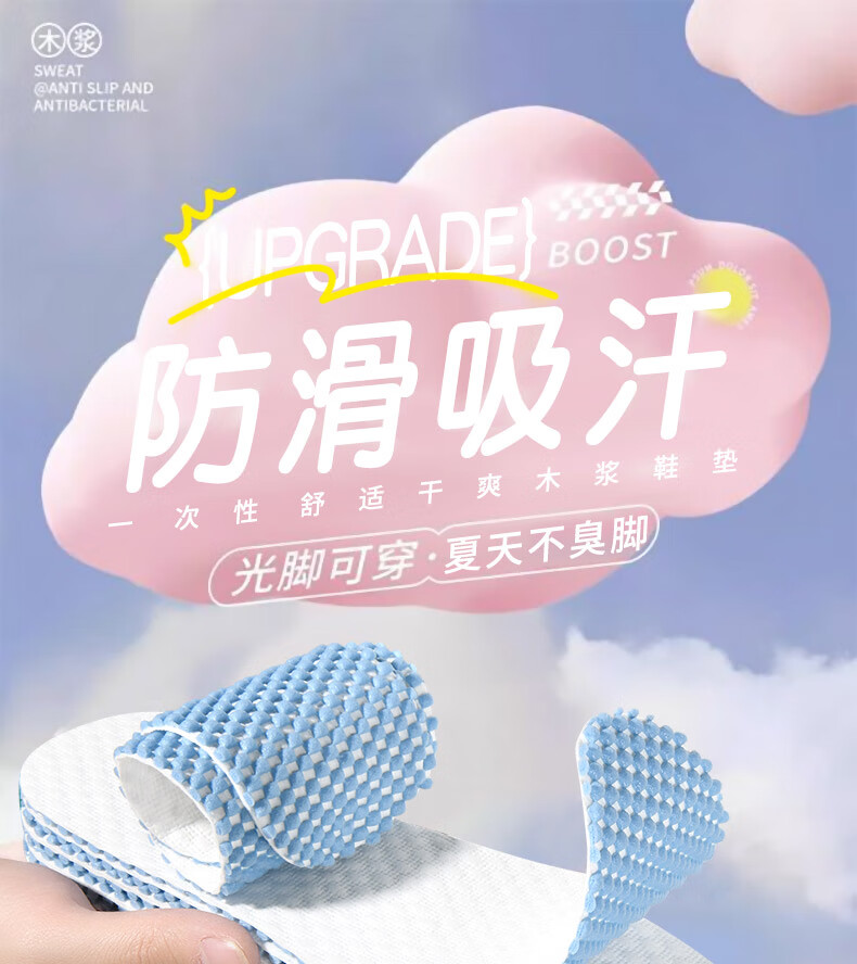 Summer anti-slip wood pulp insoles for men and women's bare feet, sweat-absorbent, deodorant, non-stick, special soft sole for sweaty feet, comfortable 20 pairs white, disposable + no-wash anti-slip 43