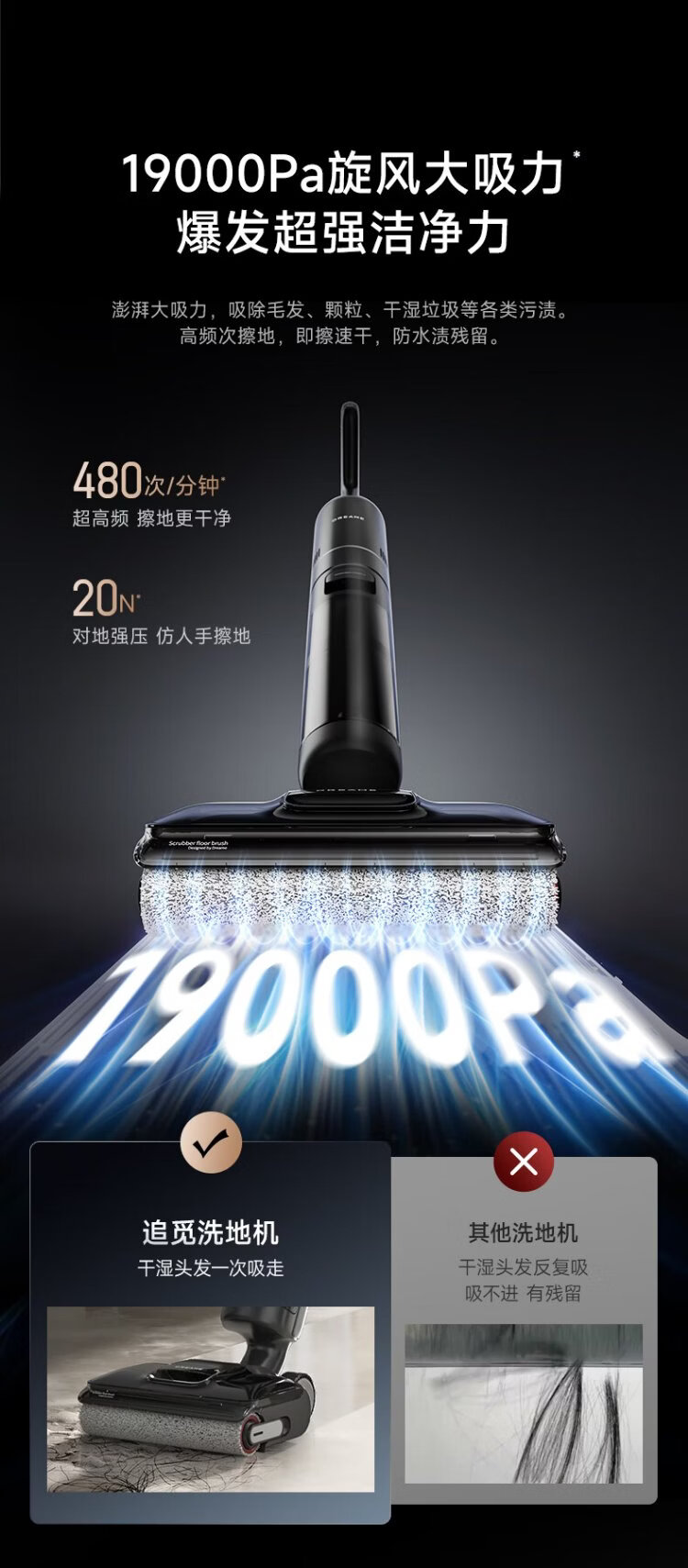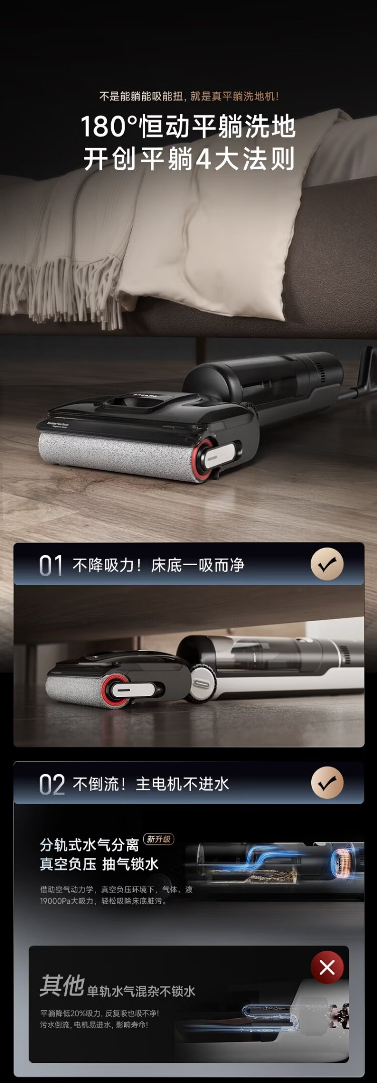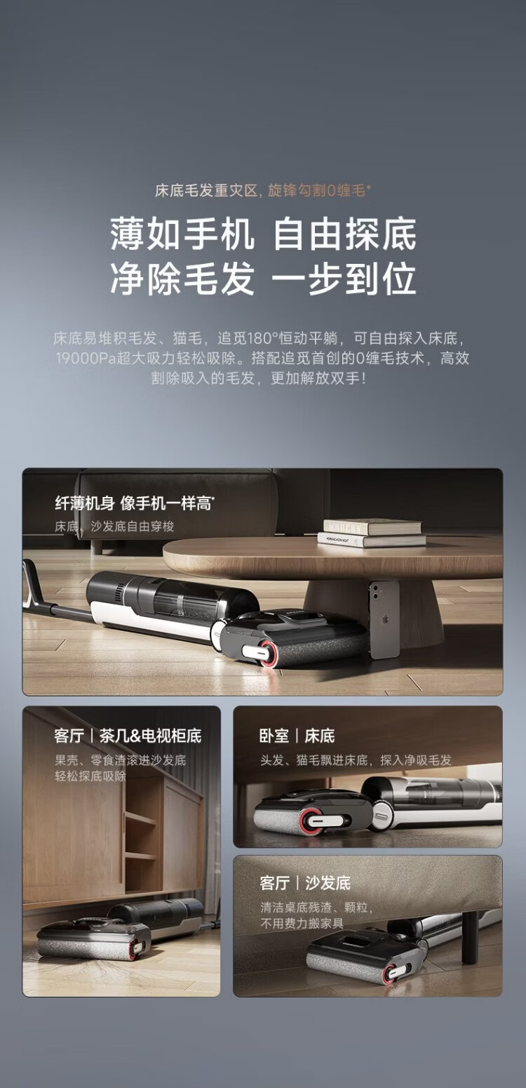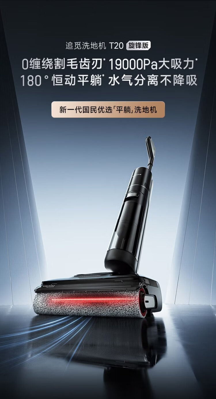 Zhuimi T20 vortex floor washer 180, lay flat with 0 tangle, high temperature soaking and wash, sterilization and quick drying, household floor mopping machine, suction and mopping, all-in-one sweeping robot vacuum cleaner, automatic cleaning, 0 tangle, lay flat, T20 vortex version