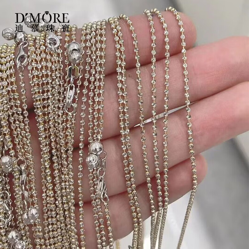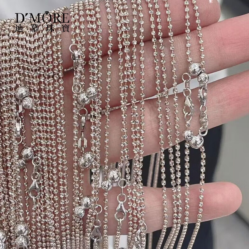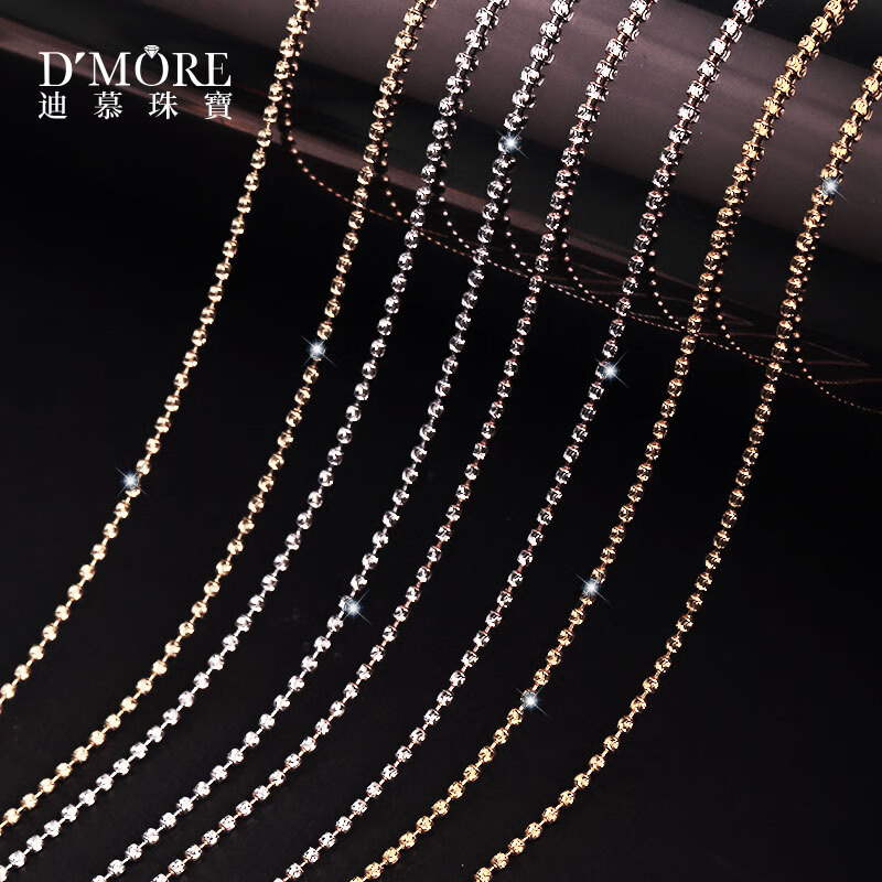 Chi Xing 18k gold diamond chain necklace for women, Italian craftsmanship AU750 plain chain, sparkling chain, diamond chain, fine model for girlfriend, 18k gold, white gold, chain length about 45CM, gold weight about 5.5 grams (adjustable)