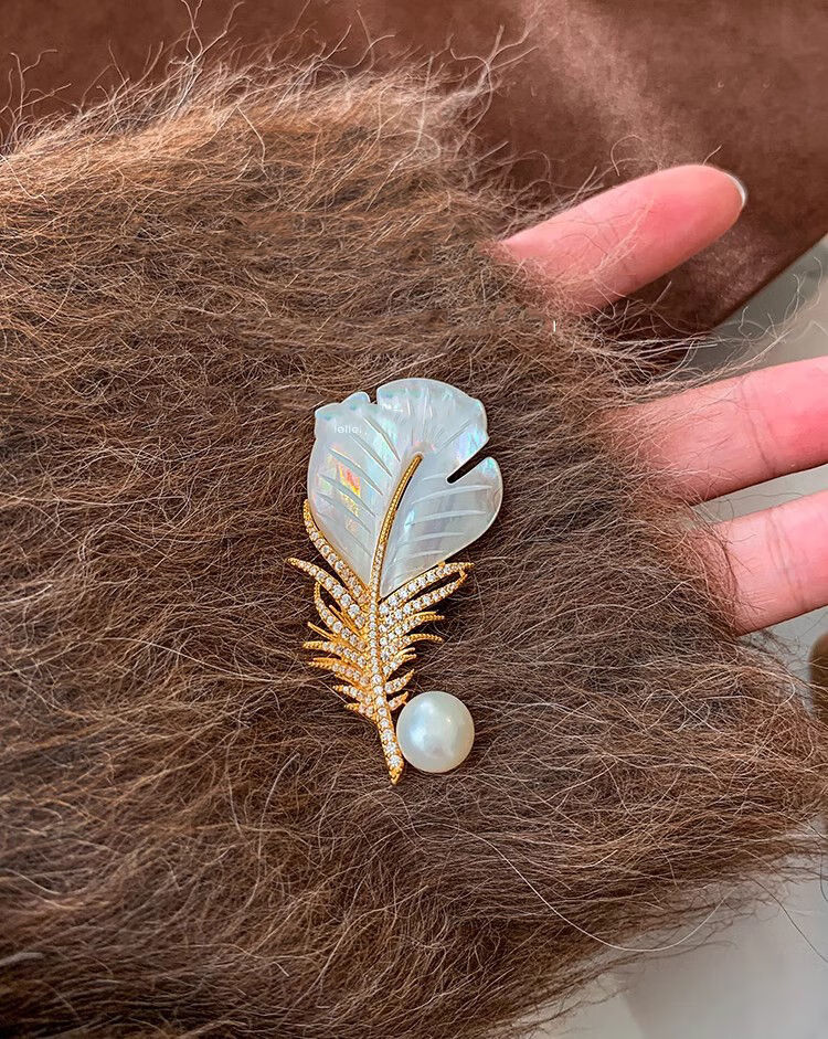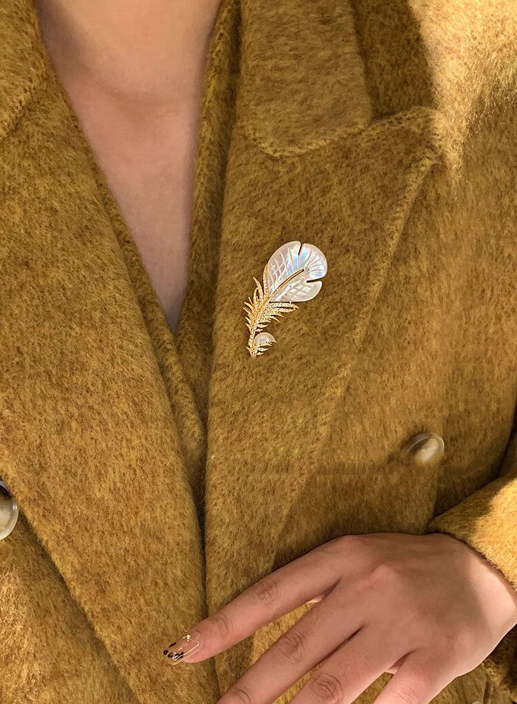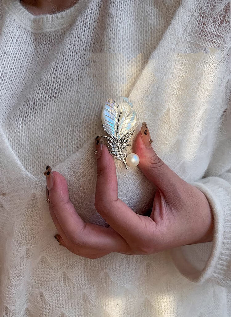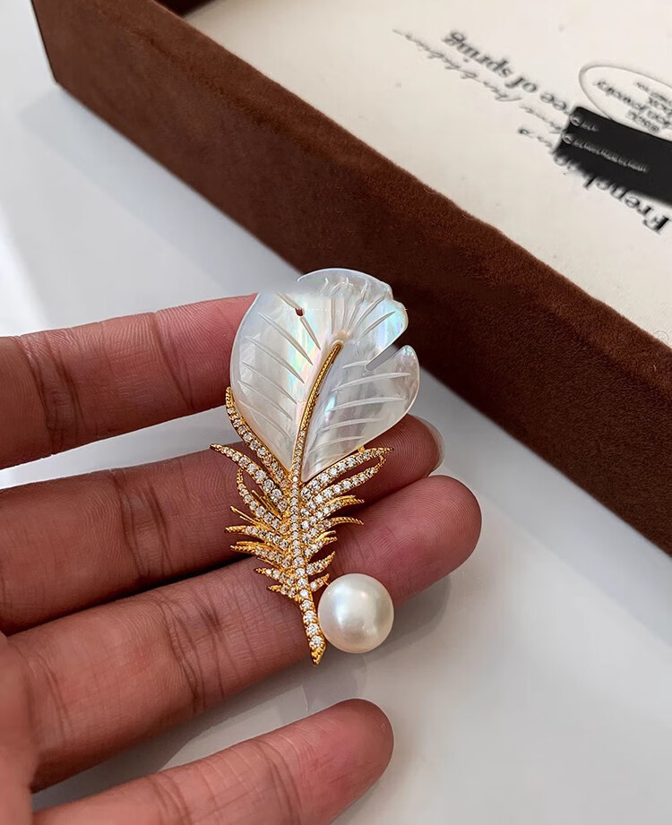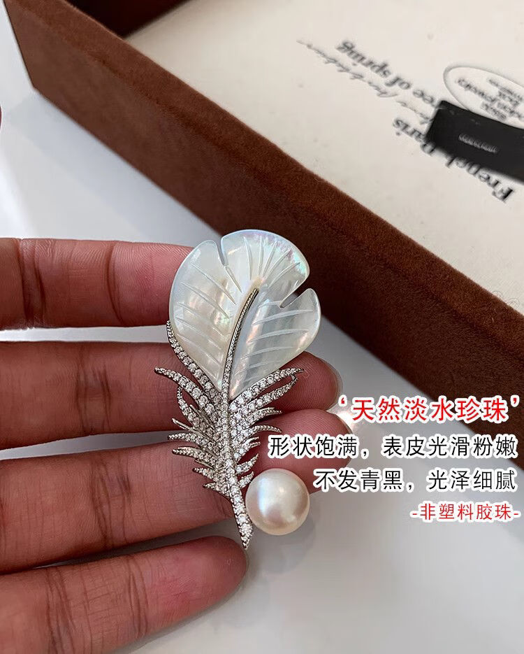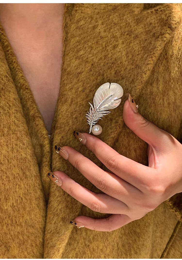 Lie Rui natural freshwater mother-of-pearl feather brooch for men and women high-end luxury suit corsage brooch silver