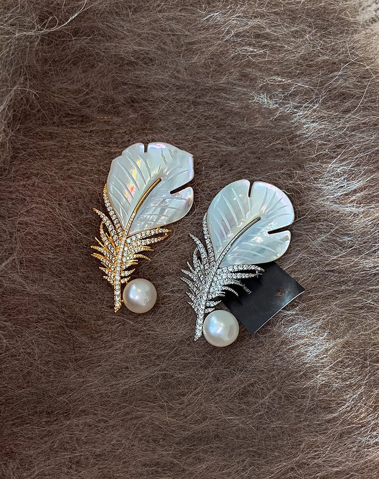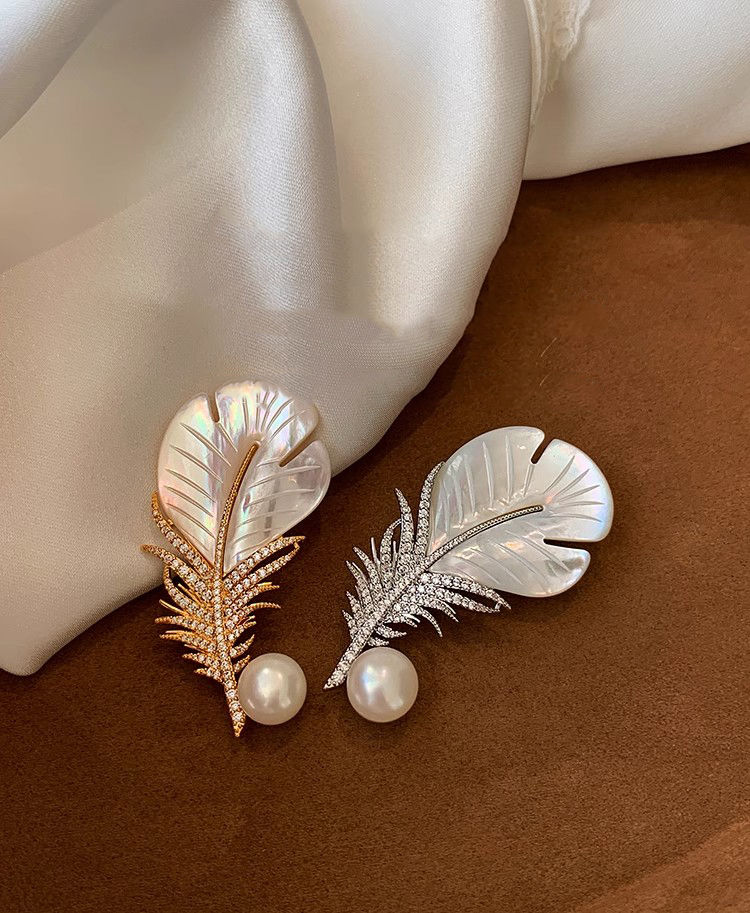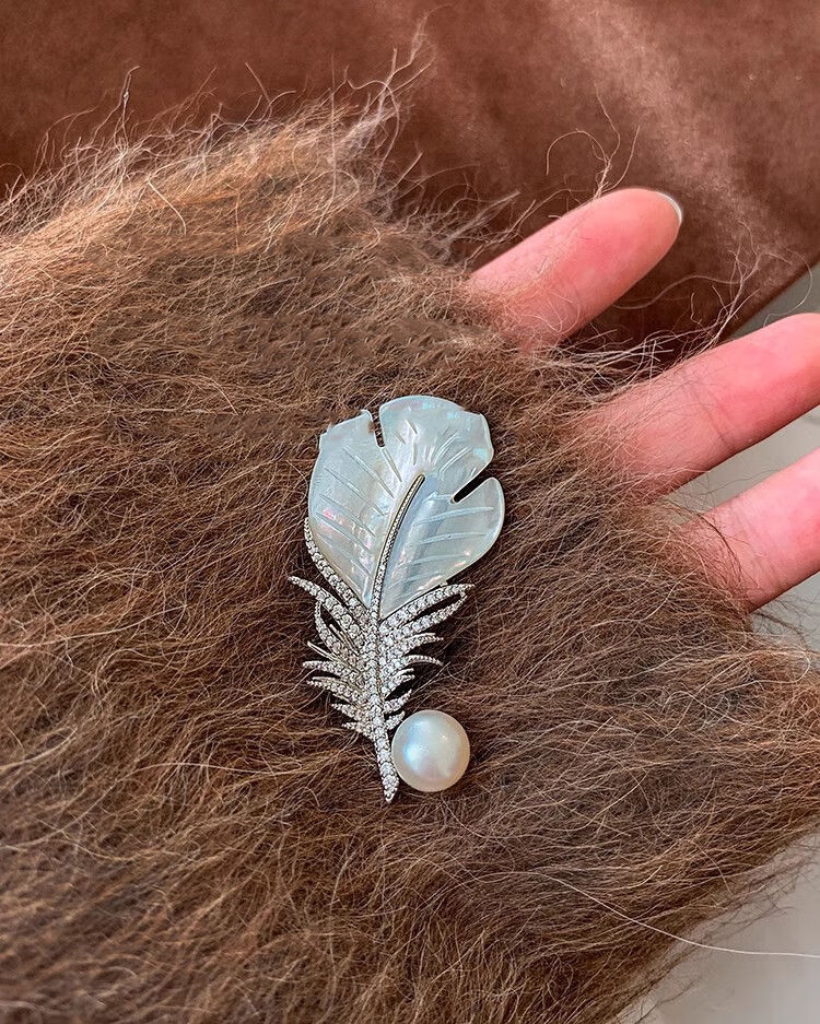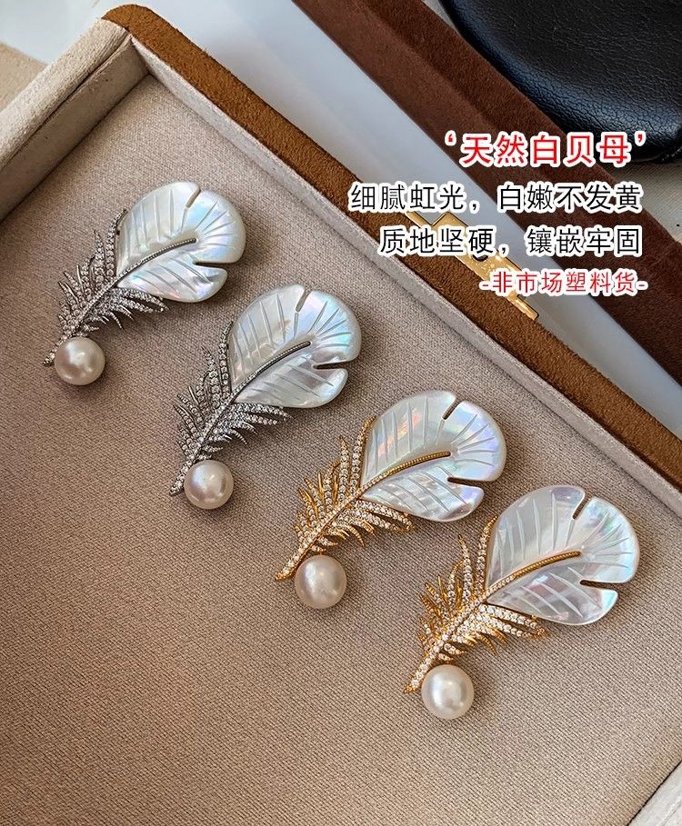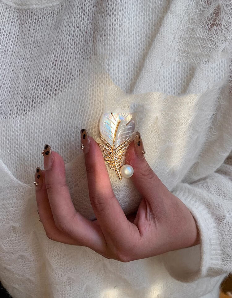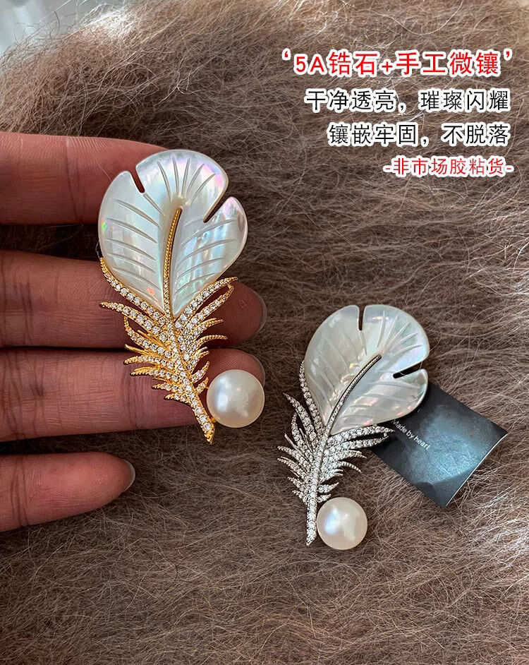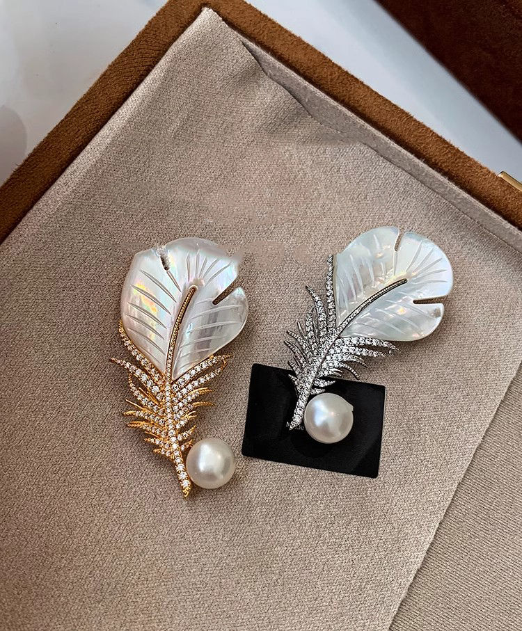 Lie Rui natural freshwater mother-of-pearl feather brooch for men and women high-end luxury suit corsage brooch silver