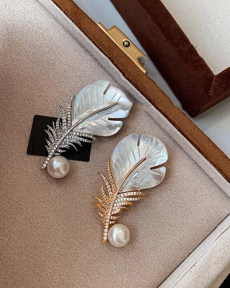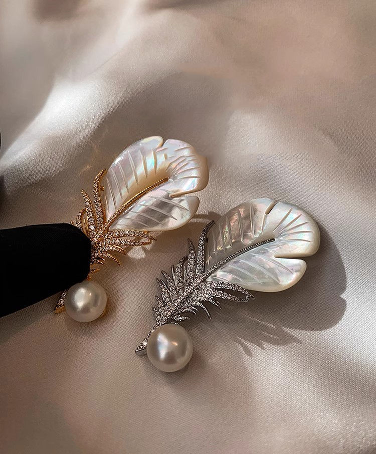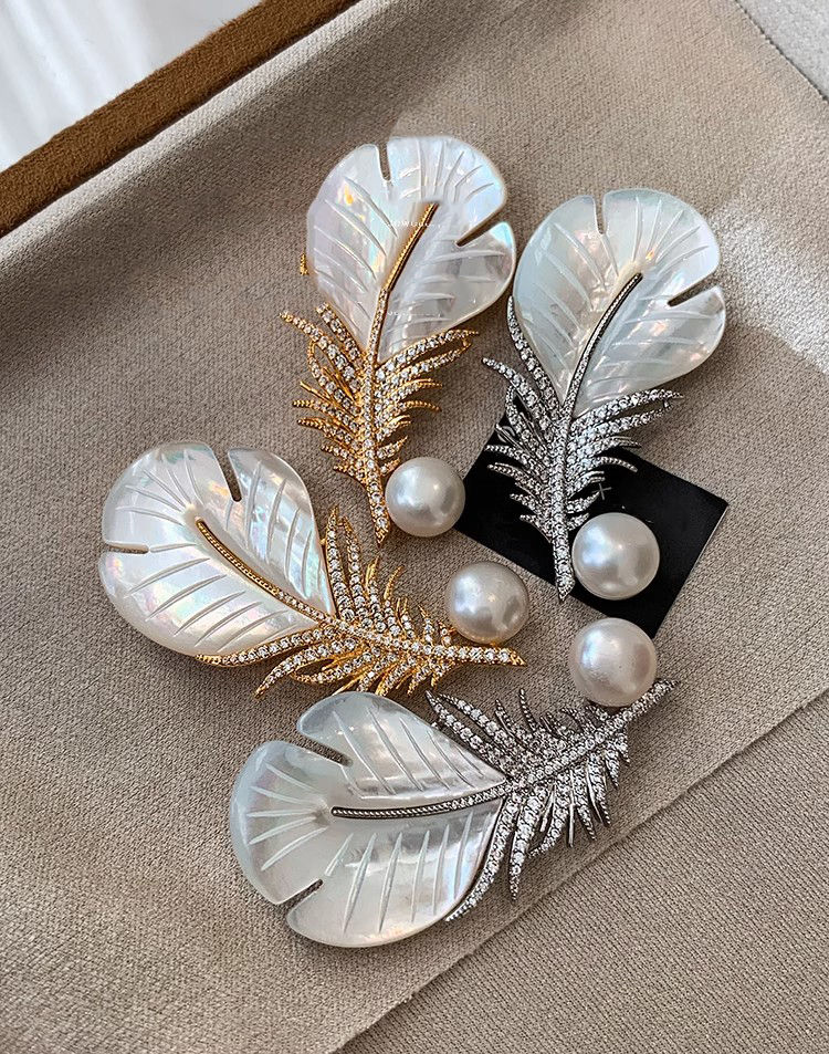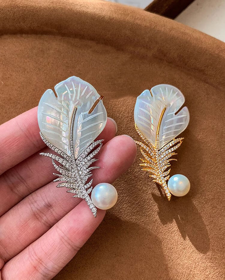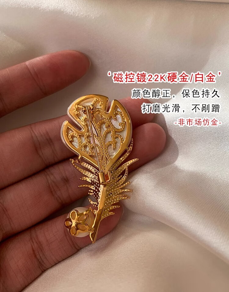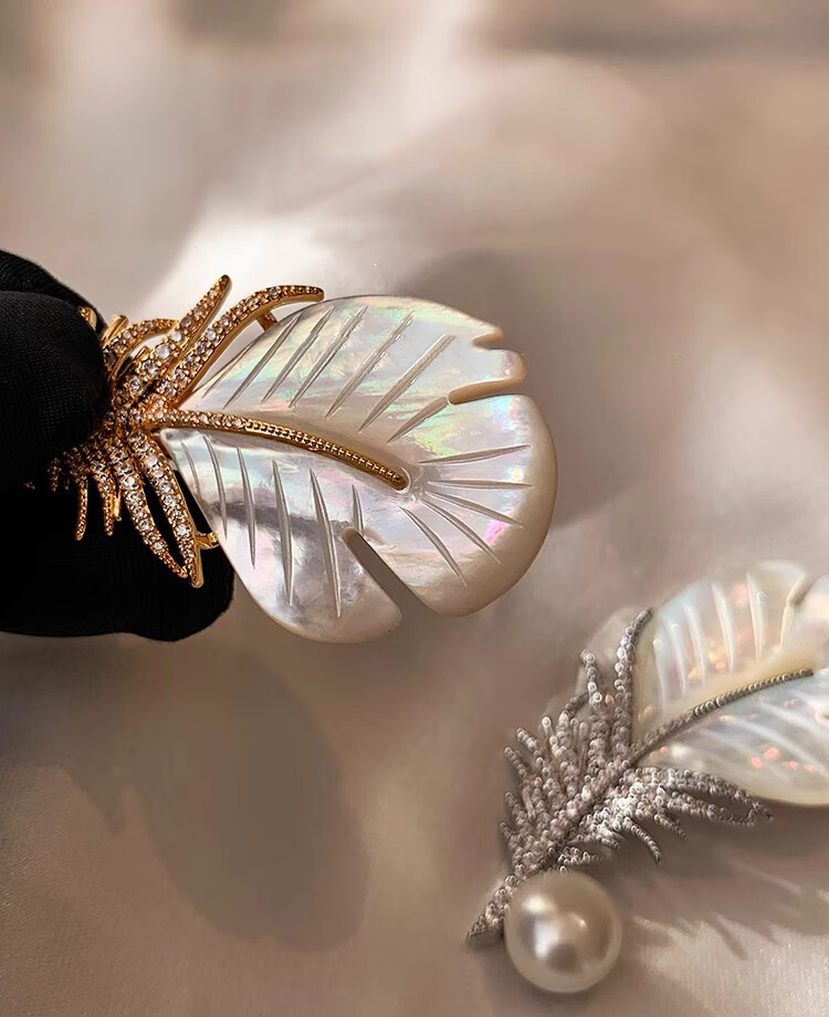 Lie Rui natural freshwater mother-of-pearl feather brooch for men and women high-end luxury suit corsage brooch silver