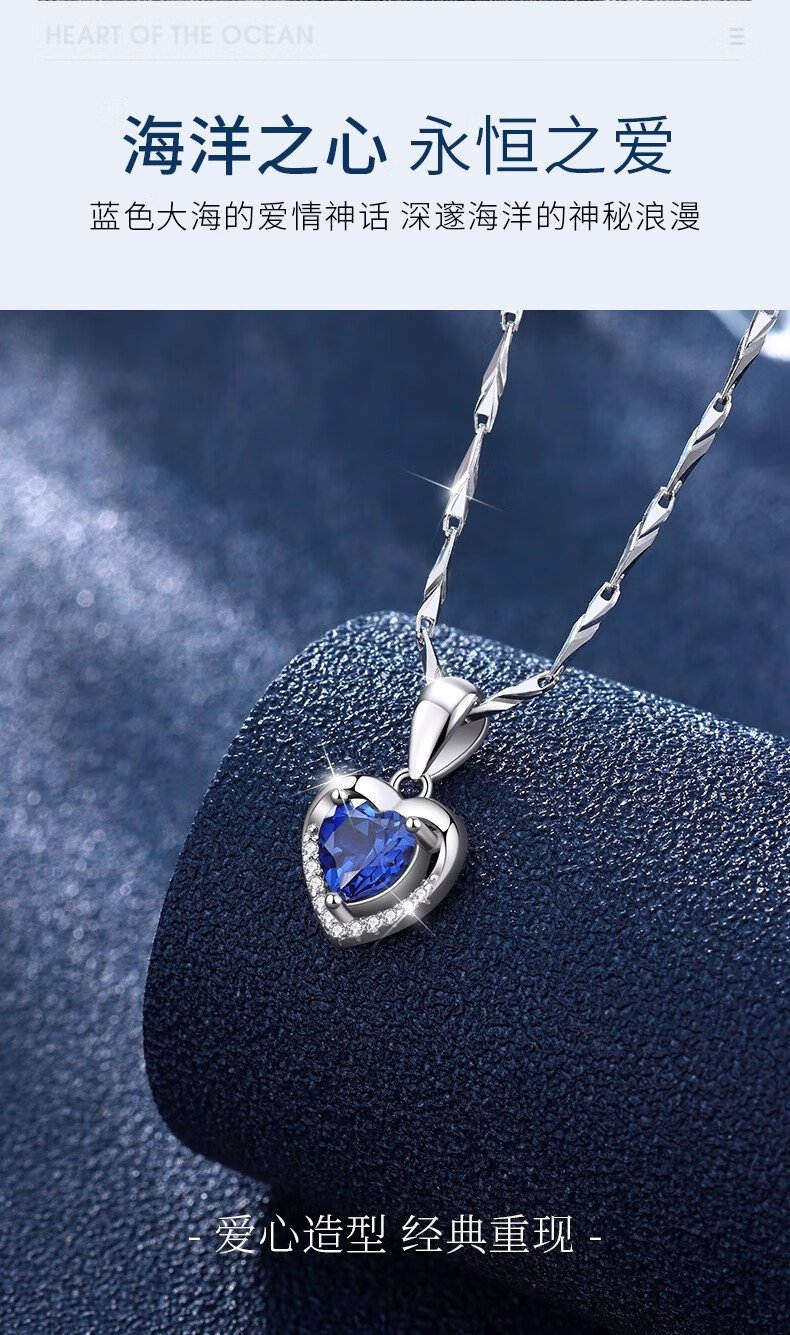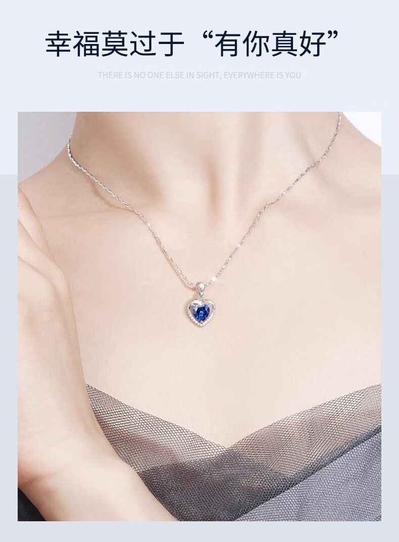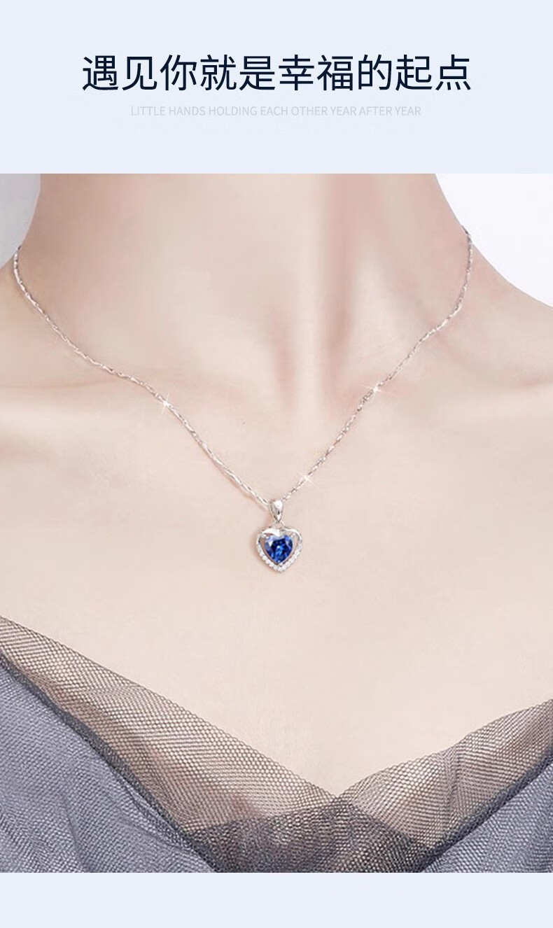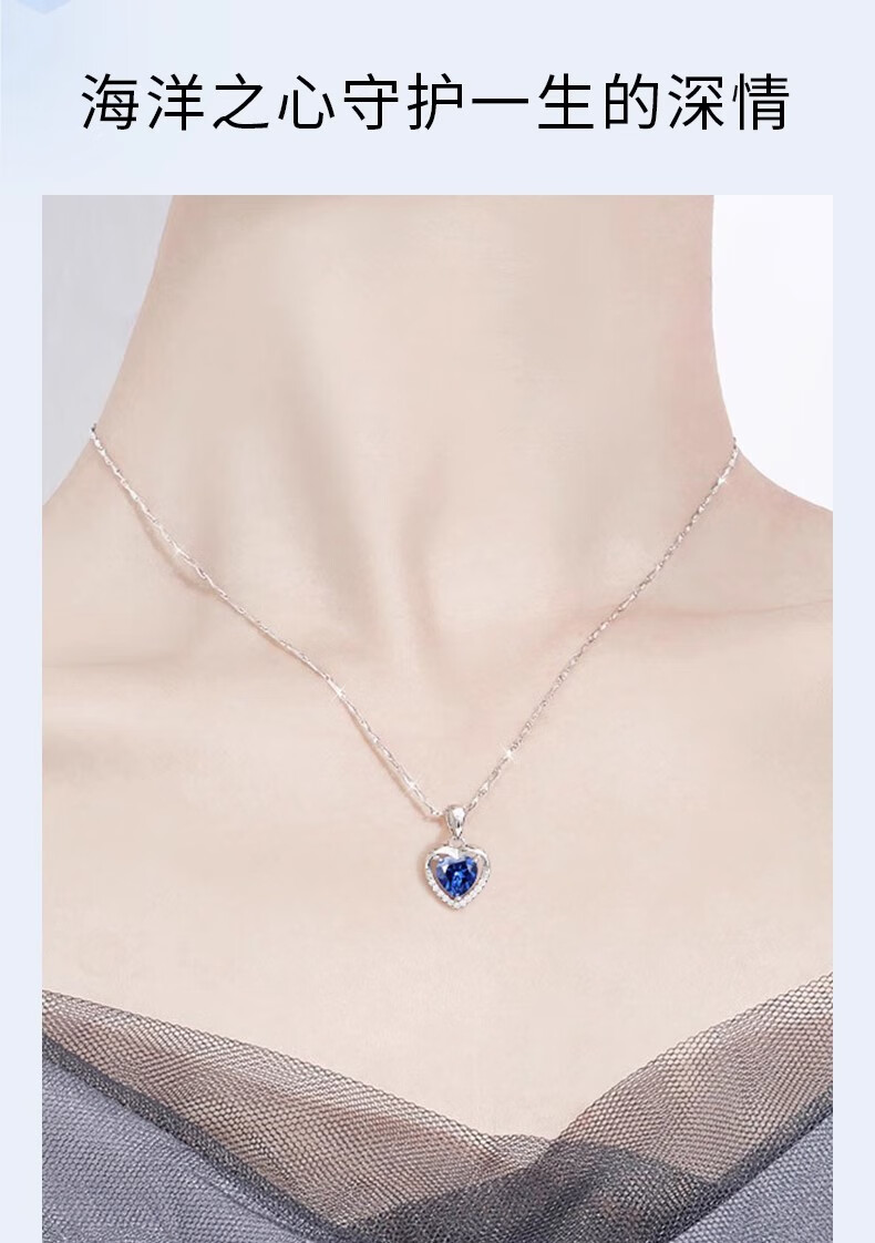 Helena Helena Heart of the Ocean Necklace Women's Sapphire Girls 2025 New Anniversary Birthday Gift for Girlfriend Heart of the Ocean Necklace - Pure Silver + Deep Sapphire