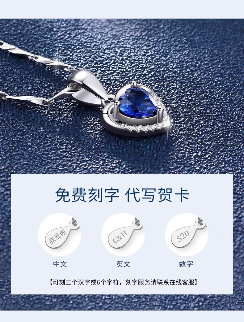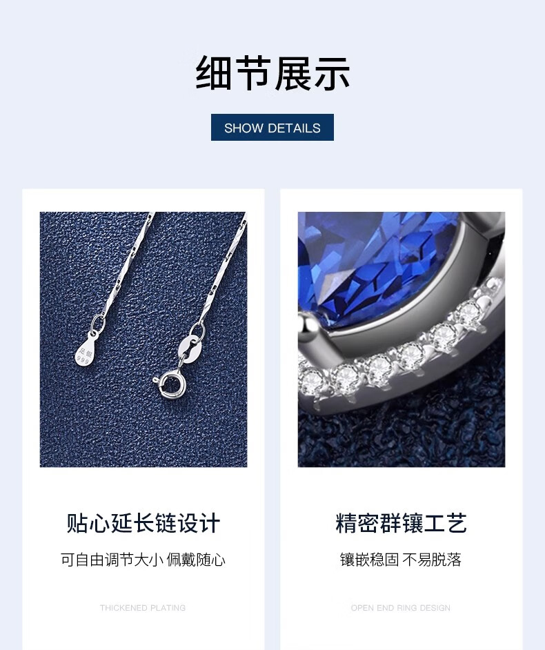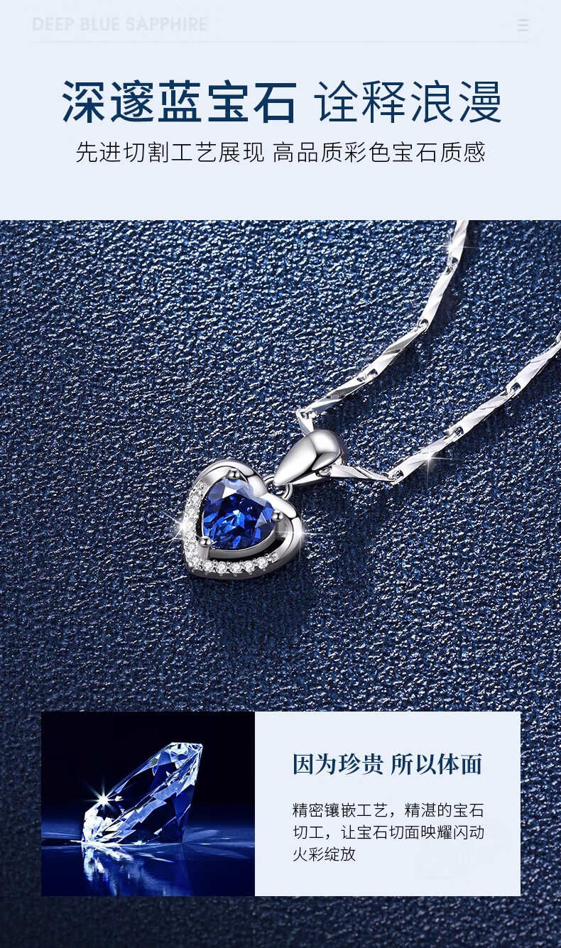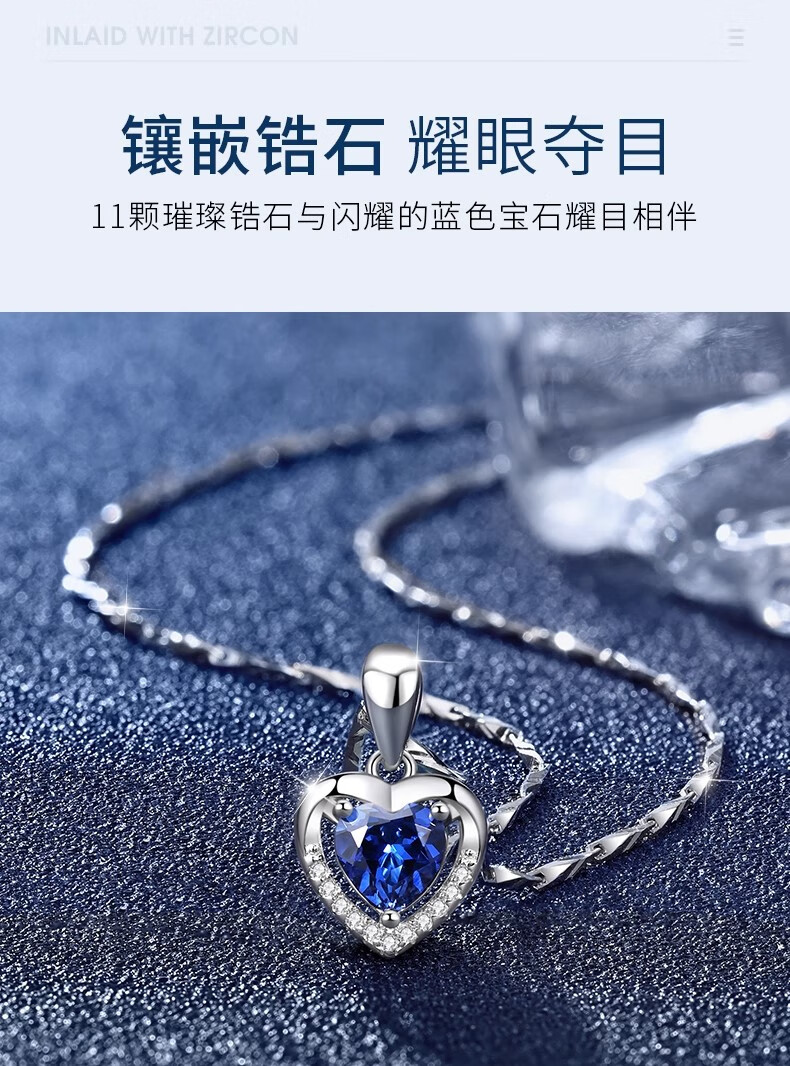 Helena Helena Heart of the Ocean Necklace Women's Sapphire Girls 2025 New Anniversary Birthday Gift for Girlfriend Heart of the Ocean Necklace - Pure Silver + Deep Sapphire