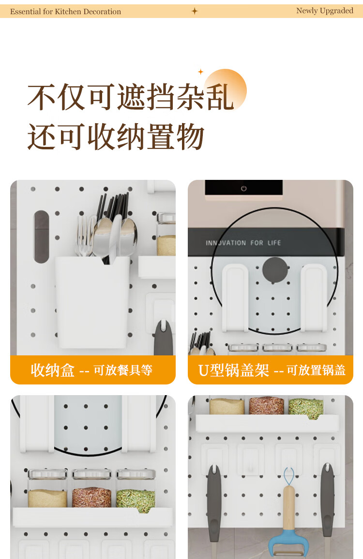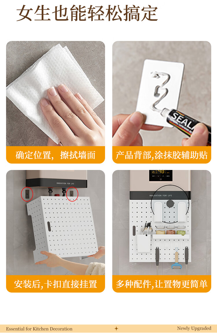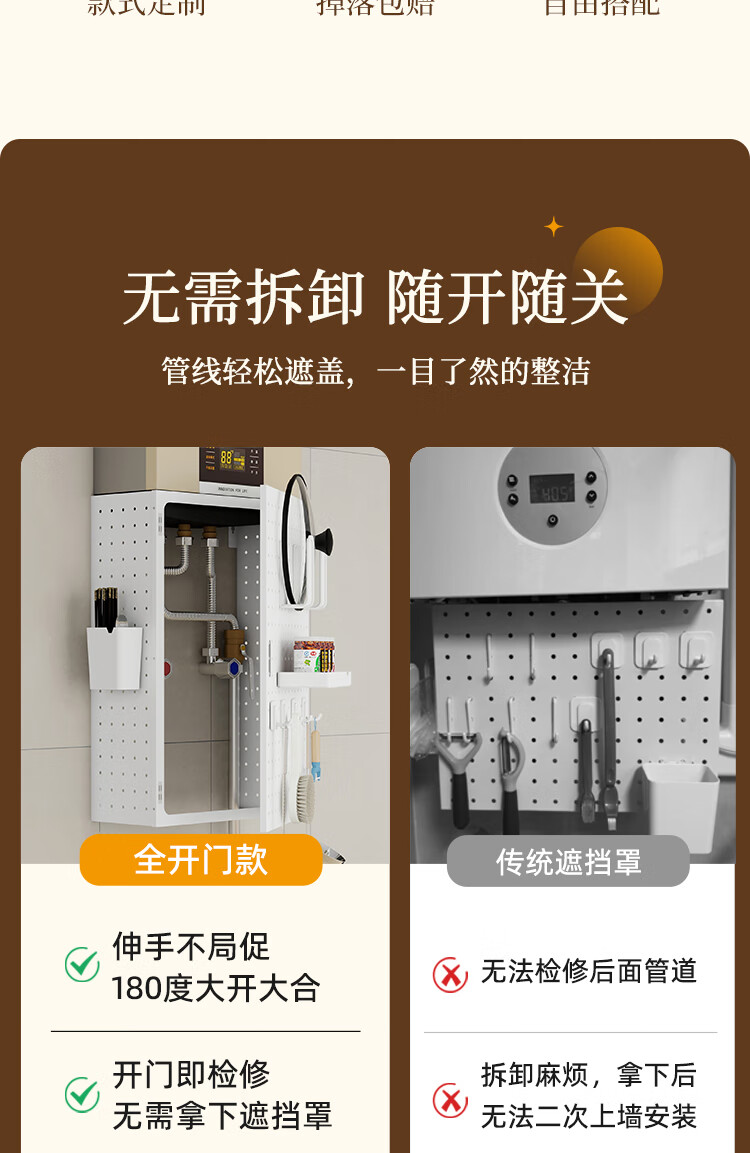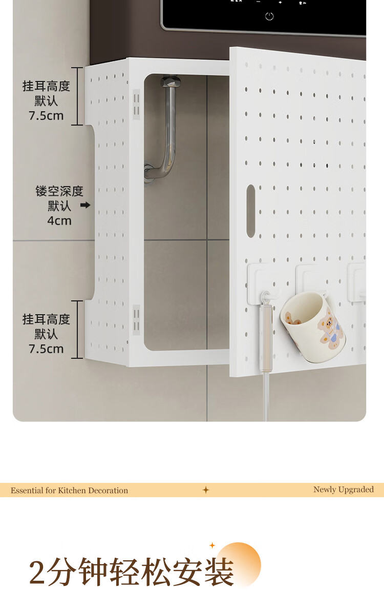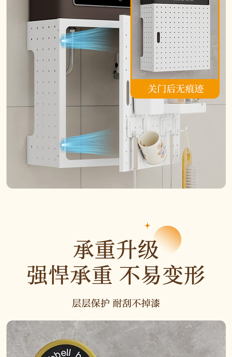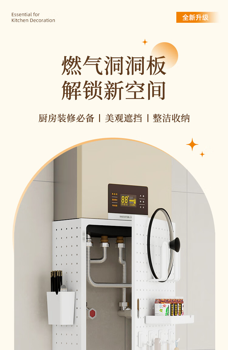 Gou Sheng Gas Water Heater Pipe Cover Hole Panel Kitchen Natural Gas Pipe Decoration Covering Baffle Storage Rack 100 yuan customization option with 12 white hooks