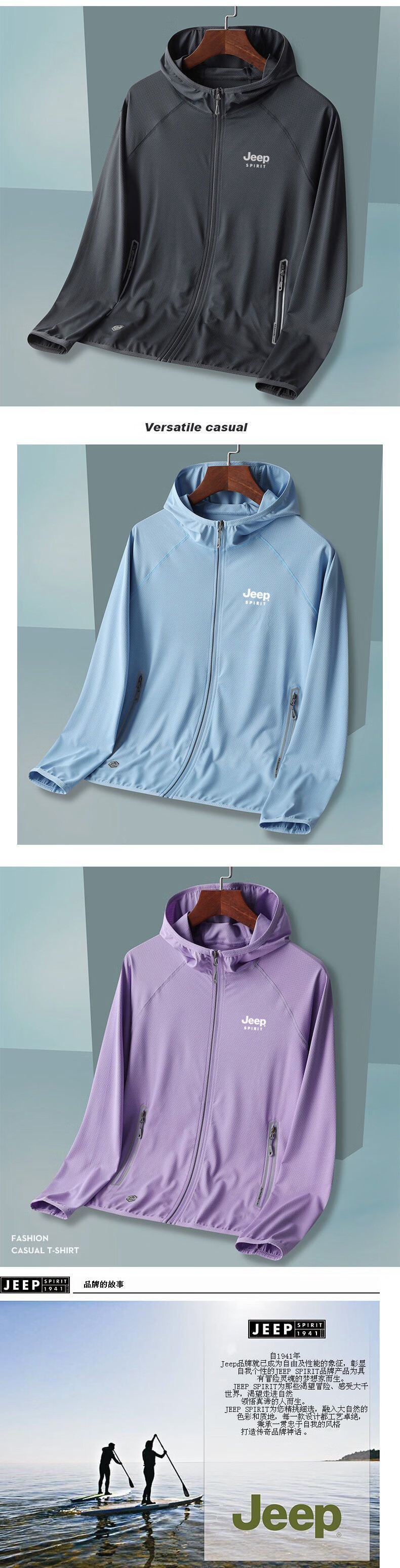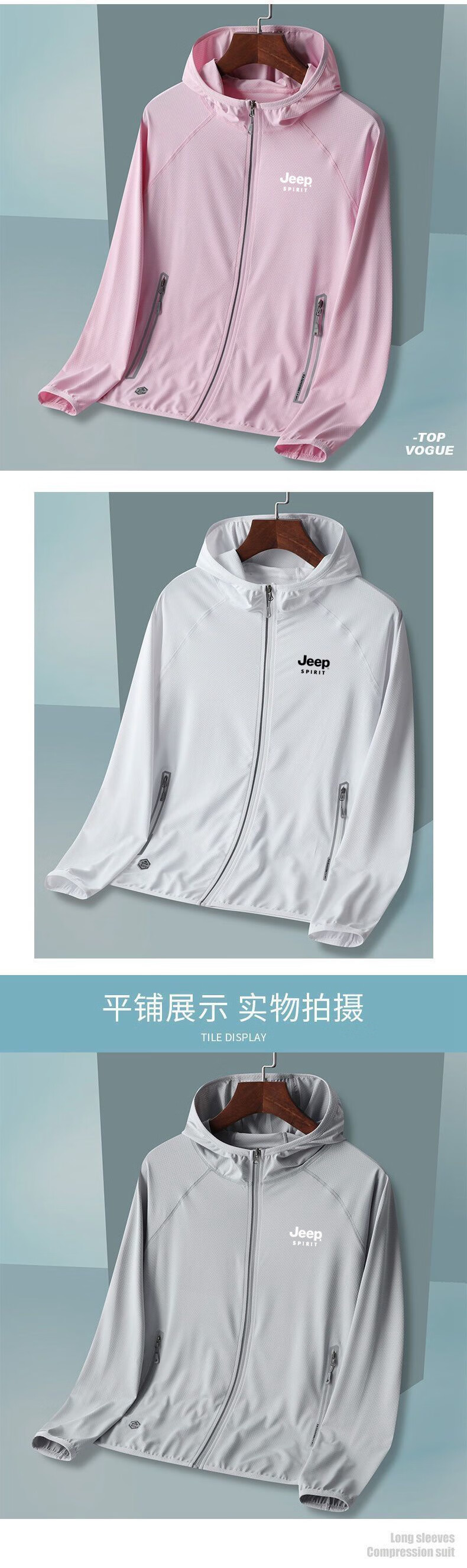 JEEP SPIRIT ice silk breathable new summer sun protection jacket for men and women, fishing, leisure and versatile UPF50 women's pink M (recommended 90-110 Jin Jin equals 0.5 kg)