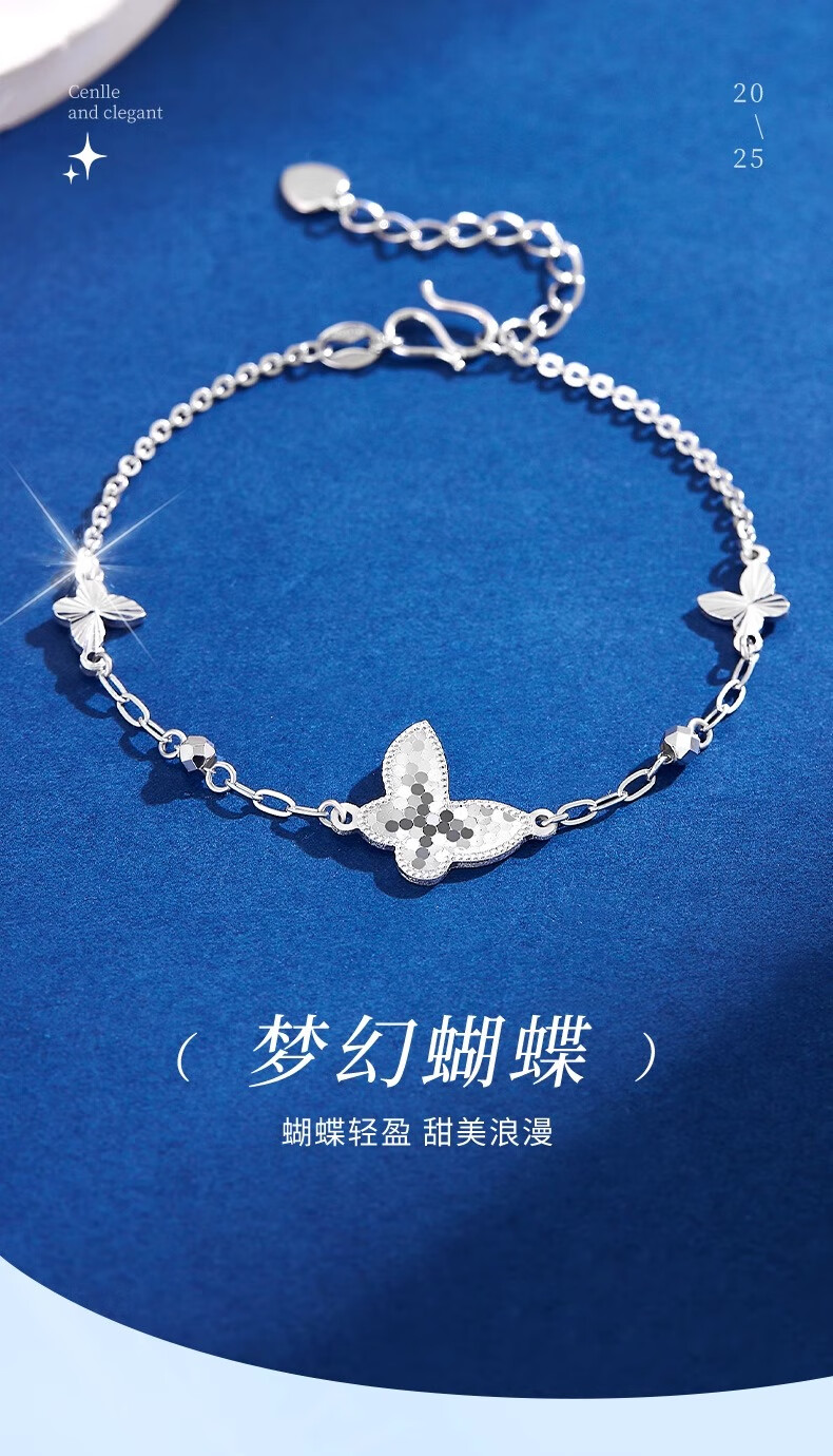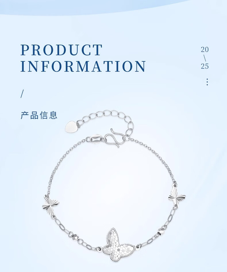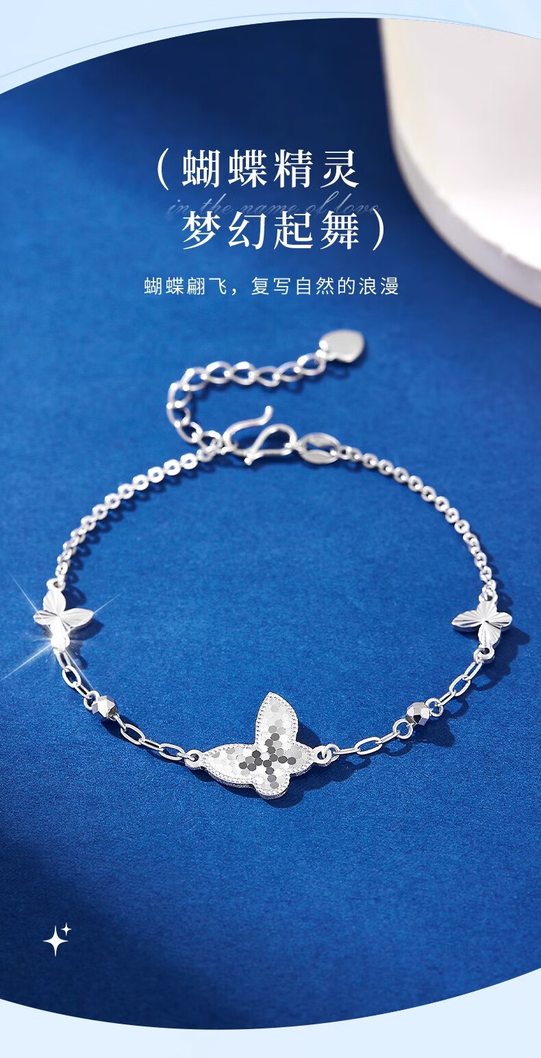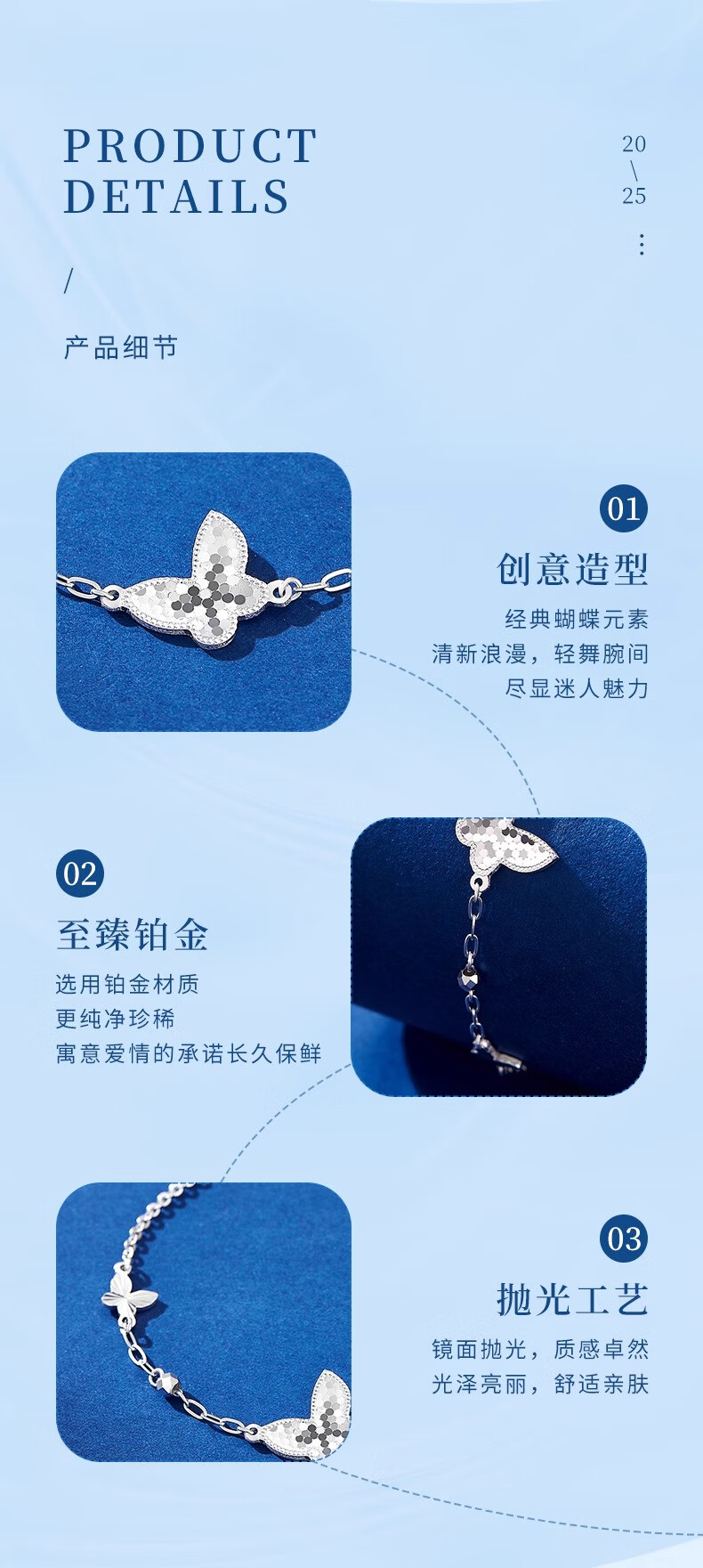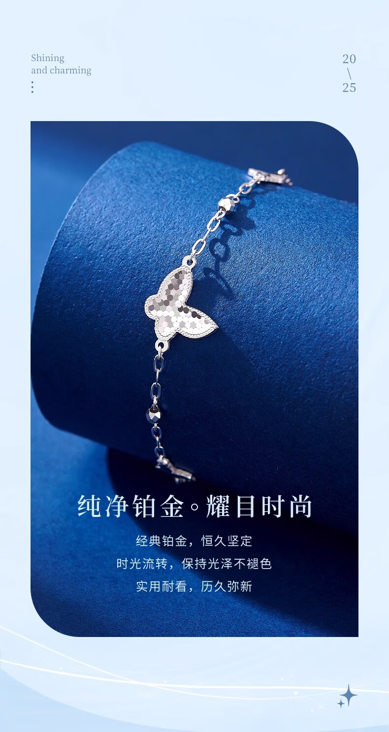 CHINA GOLD PT950 Platinum Butterfly Bracelet Platinum Bracelet Practical Valentine's Day Birthday Gift for Girlfriend, Mom and Wife PT950 Platinum Butterfly Bracelet About 5g