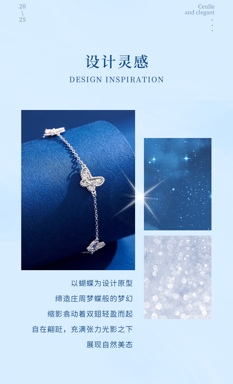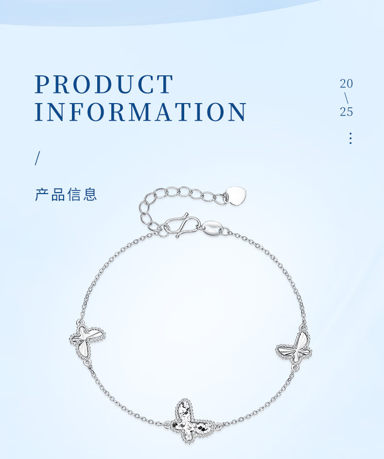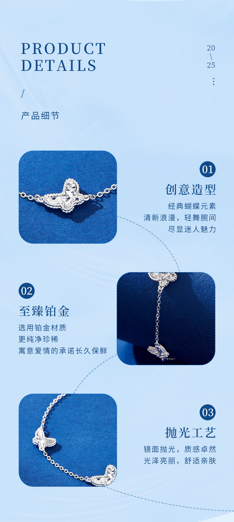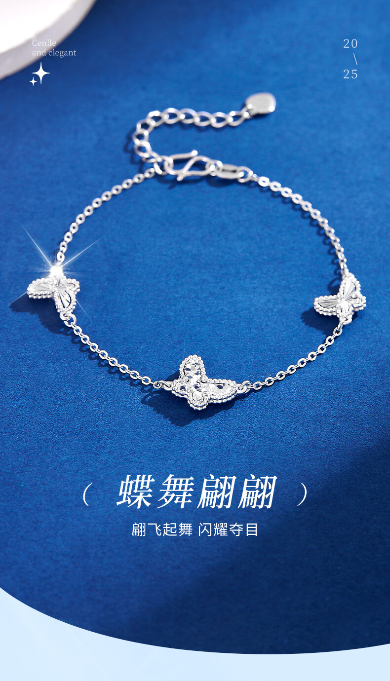 China Gold (CHINA GOLD) pt950 platinum butterfly bracelet women's platinum chain fashion jewelry Valentine's Day birthday gift for girlfriend and wife Platinum butterfly bracelet about 5.1g brand gift box