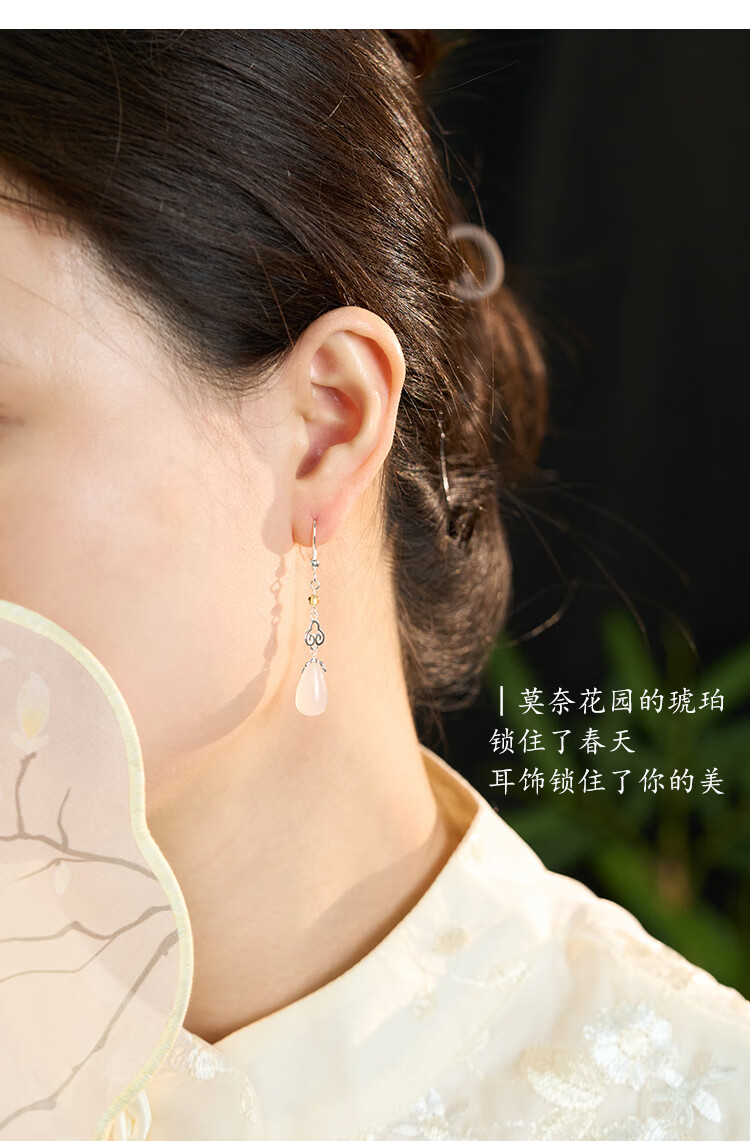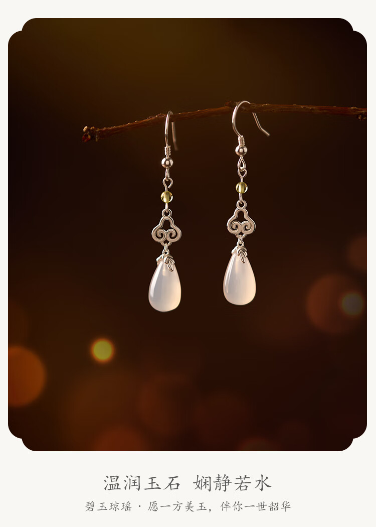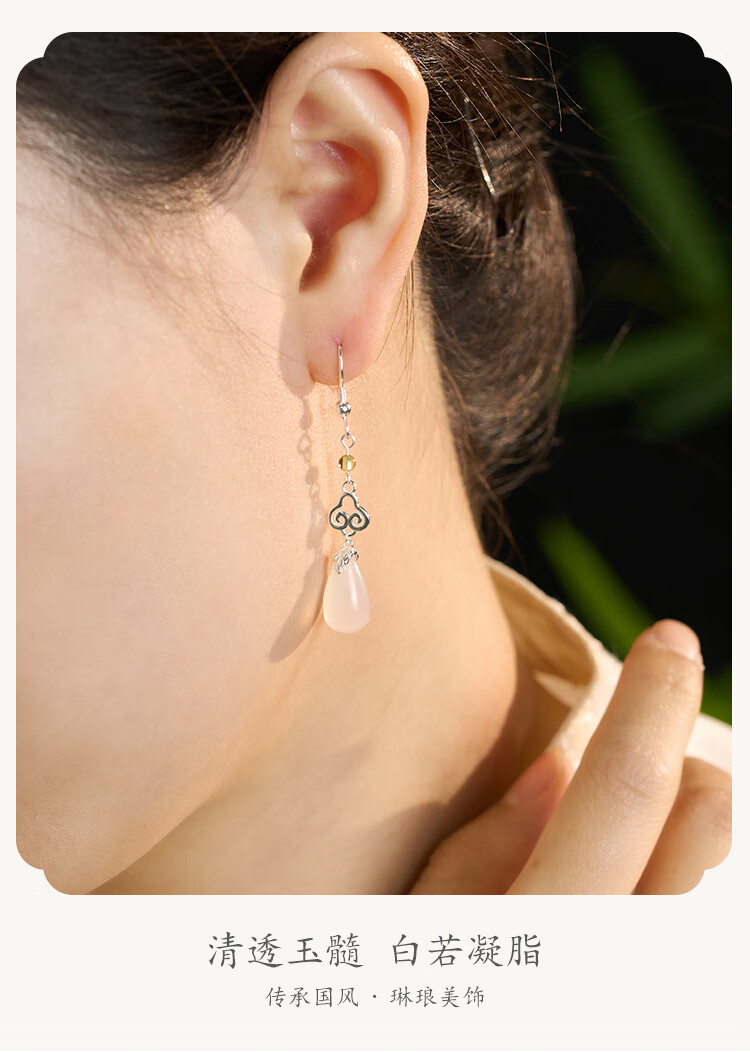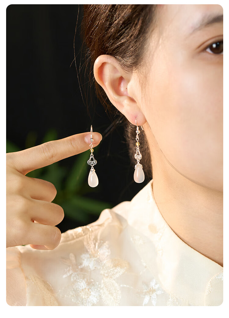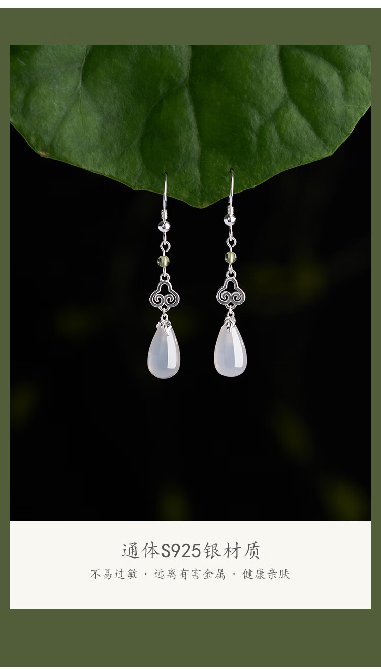 Yin Qianhui 925 silver earrings, chalcedony earrings for women, 2025 new earrings, Valentine’s Day gift for girlfriend’s mother, Yunmengze earrings + seven warehouse delivery/next day delivery, Valentine’s Day gift for girlfriend and wife/with jewelry certificate/exquisite gift box