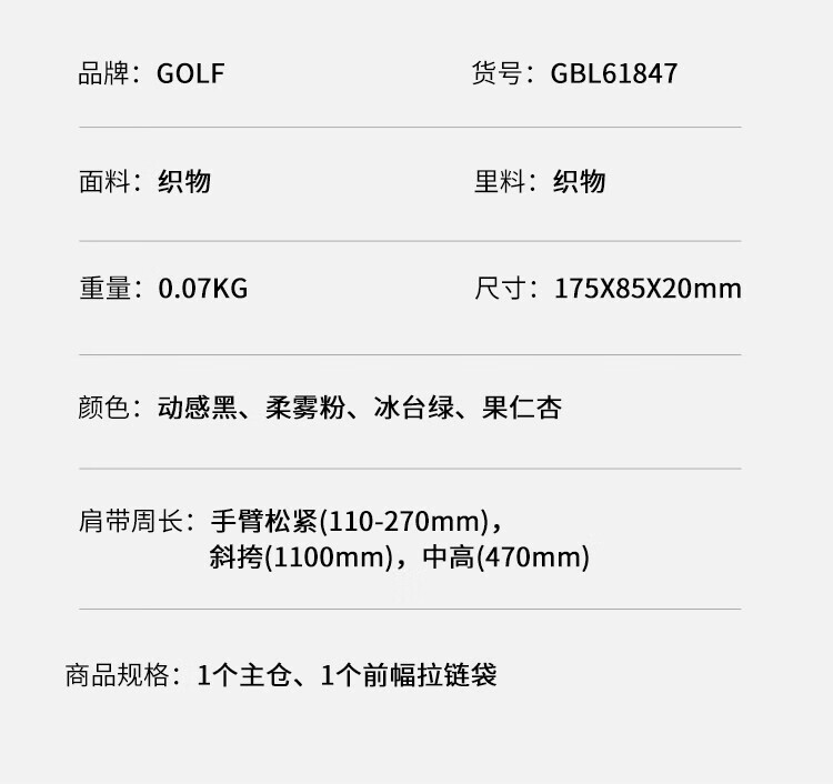 Golf (GOLF) arm bag, running mobile phone bag, men's and women's sports arm wristband bag, outdoor fitness cycling bag, water-repellent shoulder crossbody bag, dynamic black