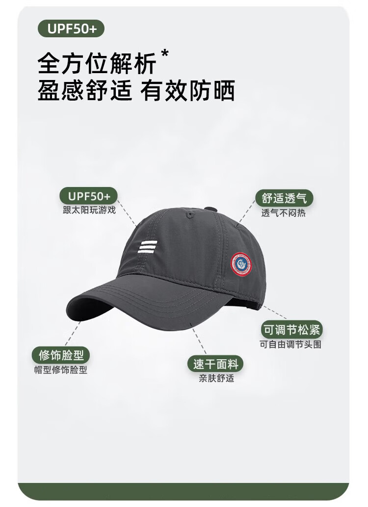SCOTT GOOSE baseball cap men's autumn new versatile fashion breathable and comfortable large head circumference hat fishing sun protection peaked cap khaki color one size large head circumference (60-65cm)