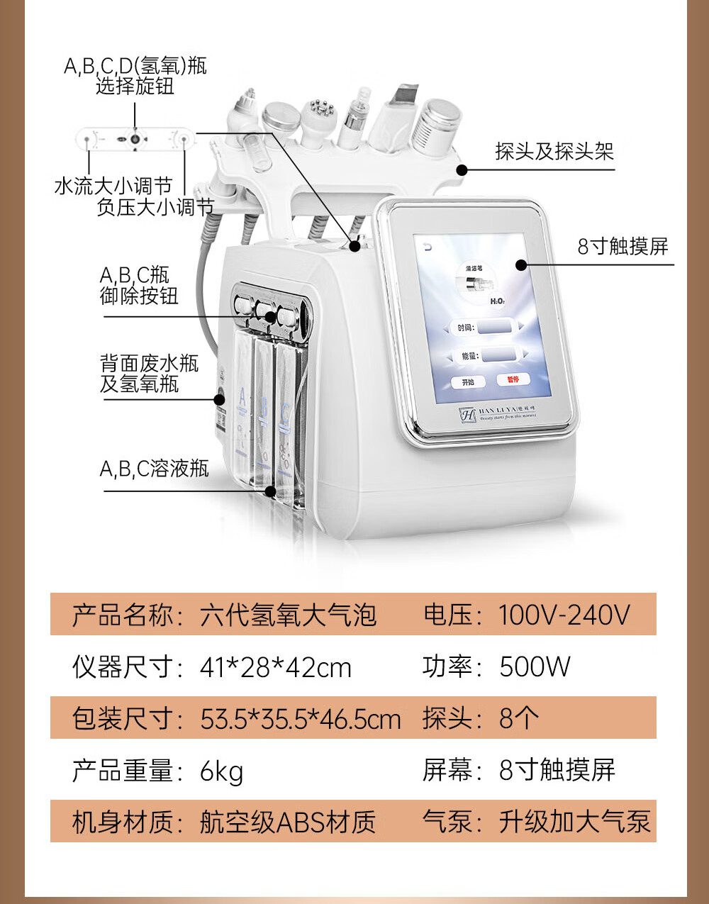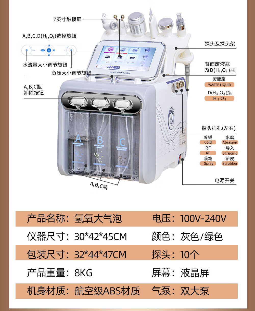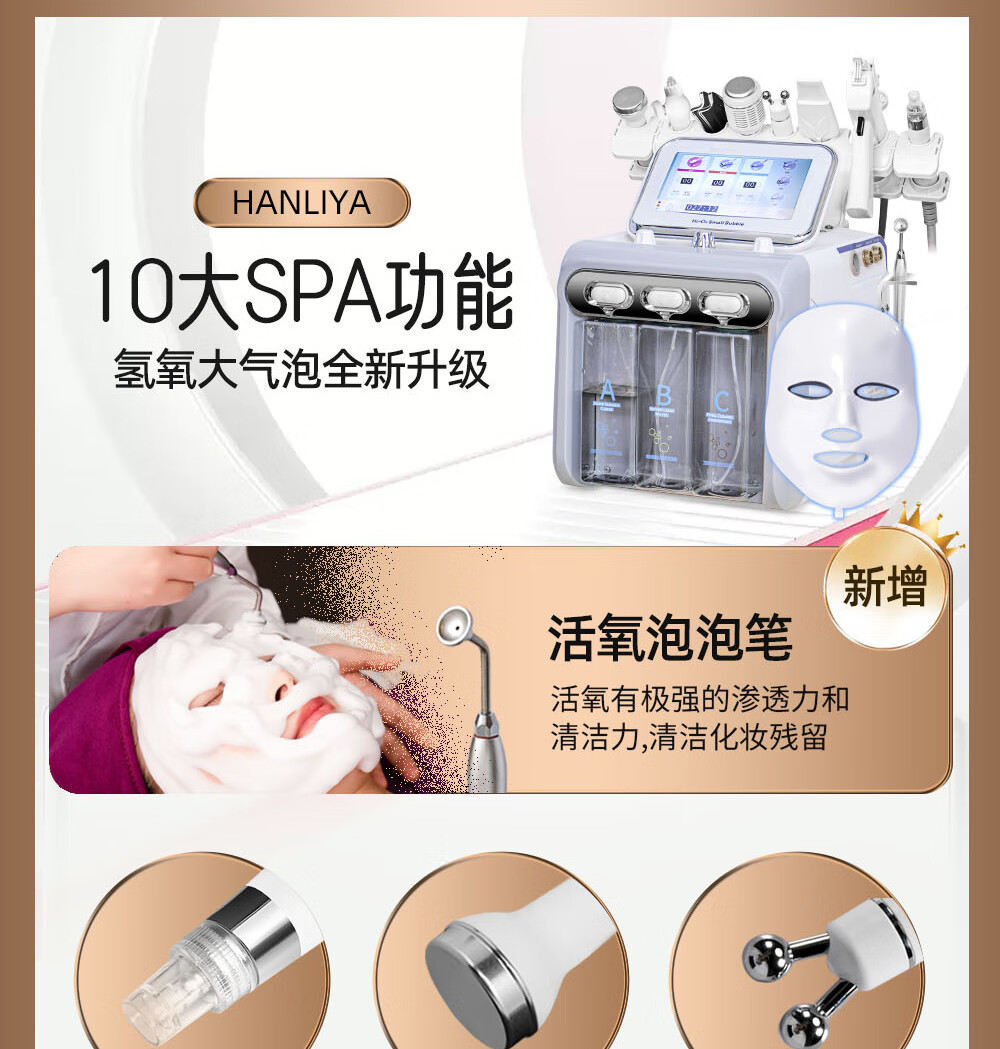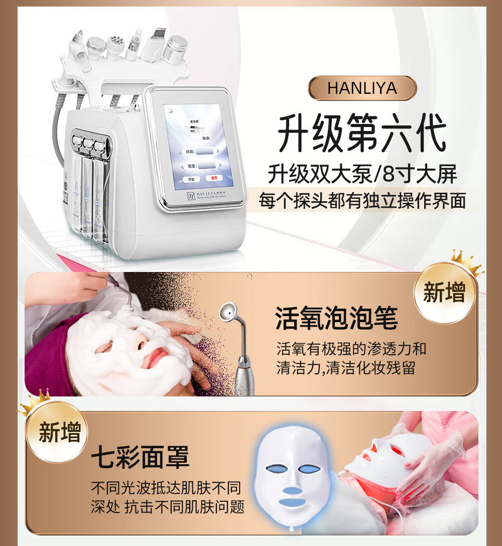 Small bubble beauty instrument cleaner, beauty salon special second generation hydrogen and oxygen bubble instrument to clean facial blackheads, high-end gray 6-in-1 (basic model)