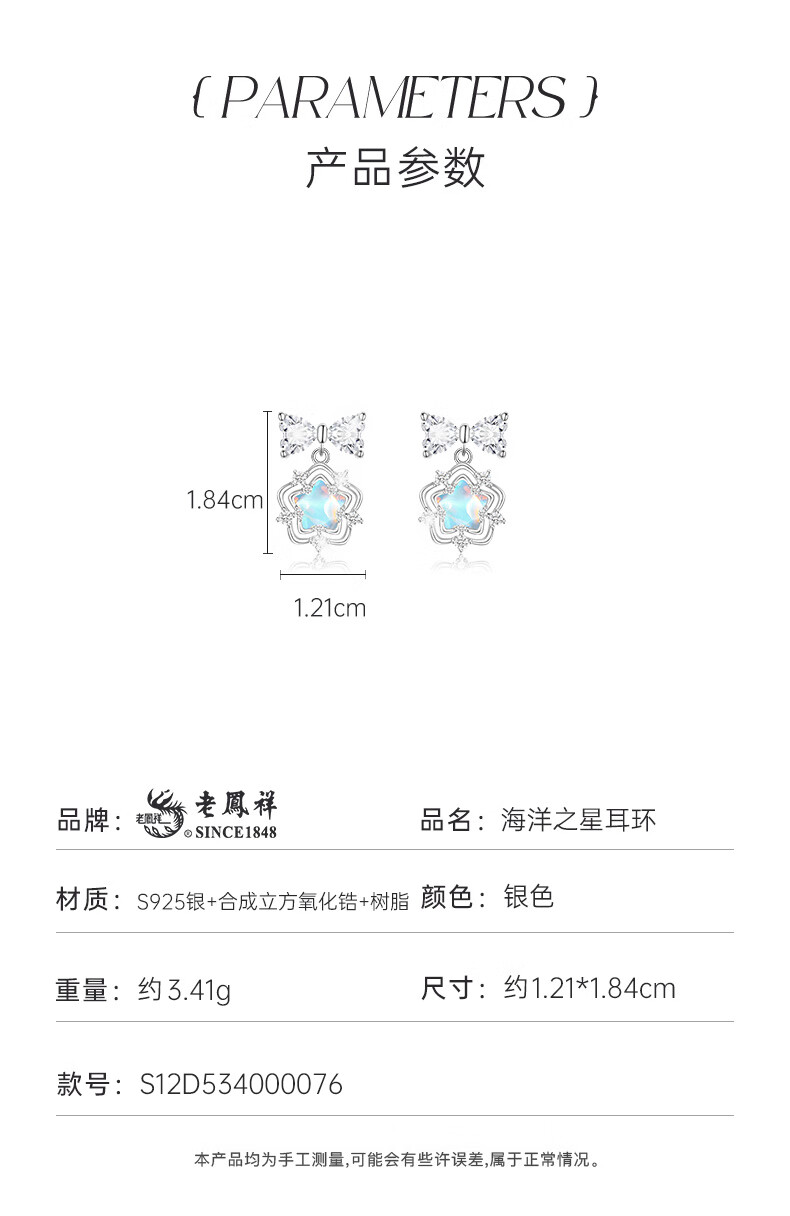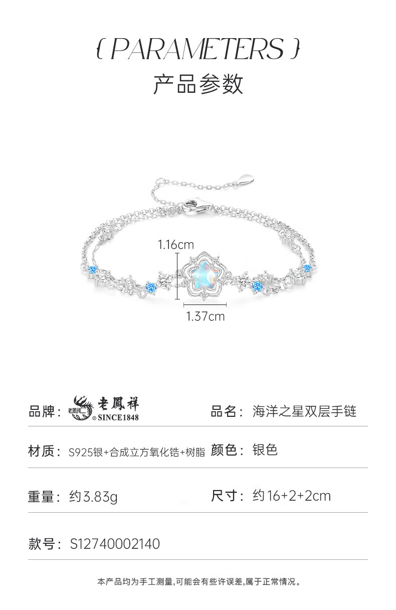 Lao Fengxiang Ocean Heart Silver Bracelet for Girls Light Luxury High-End Jewelry Valentine's Day Birthday Gift for Girlfriend and Wife Romantic Original Ocean Star Double Layer Bracelet