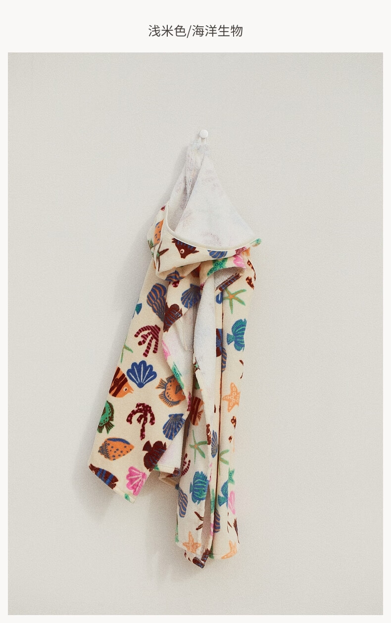 H&M 2025 new autumn girls fruit pattern shawl style towel bathrobe 1214194 light beige/sea life 300g60x70