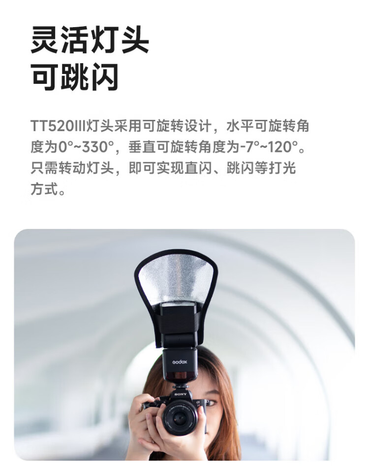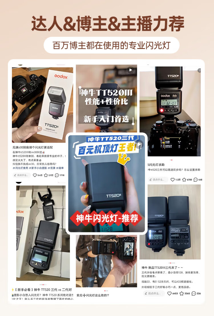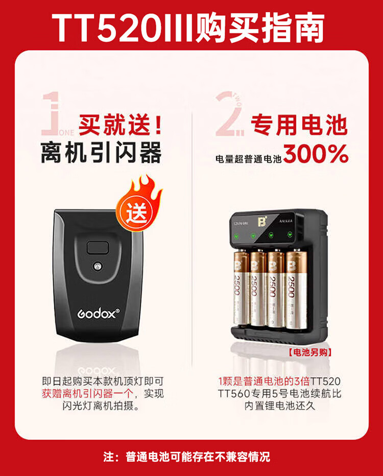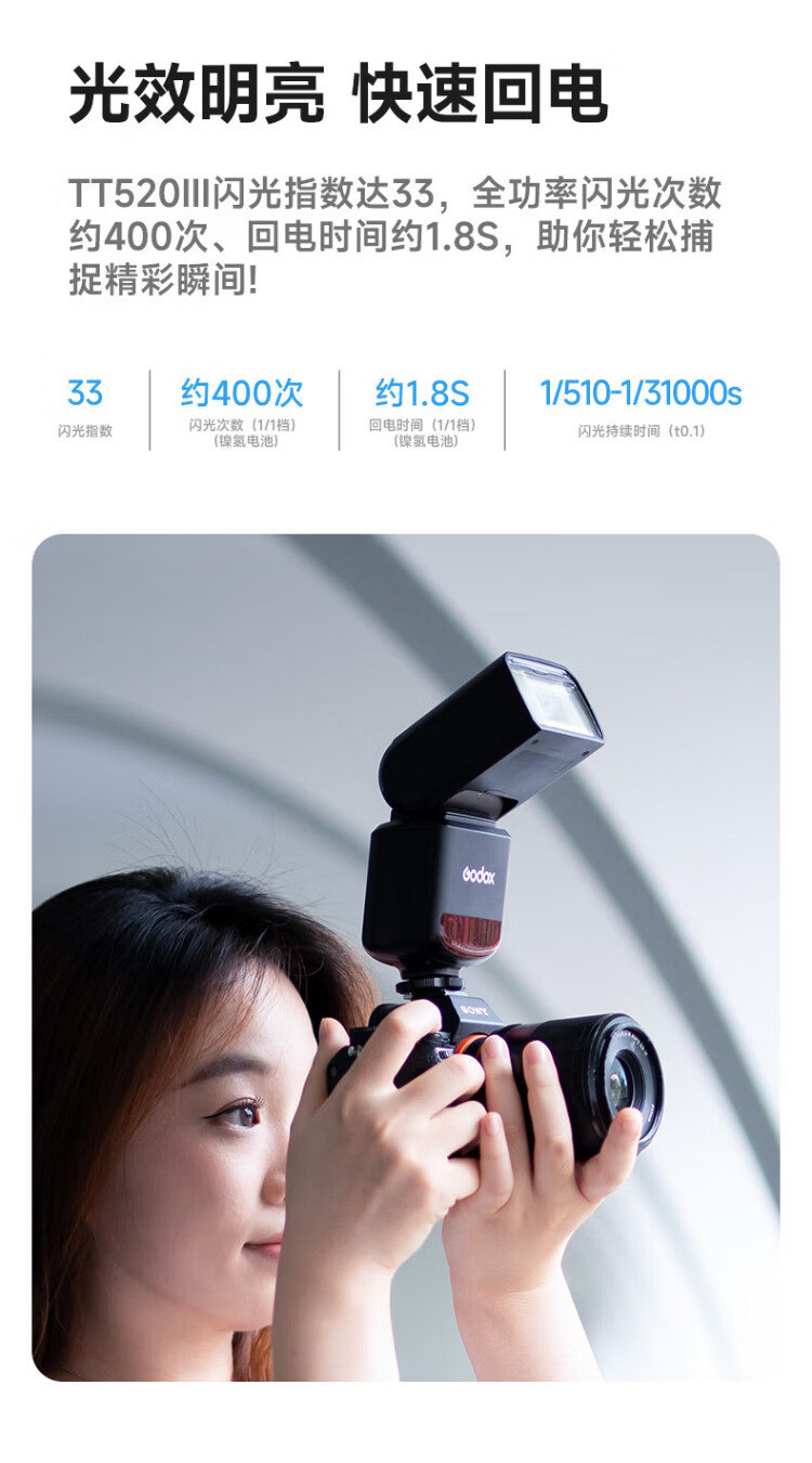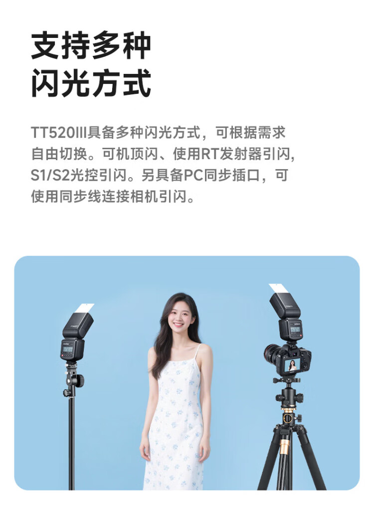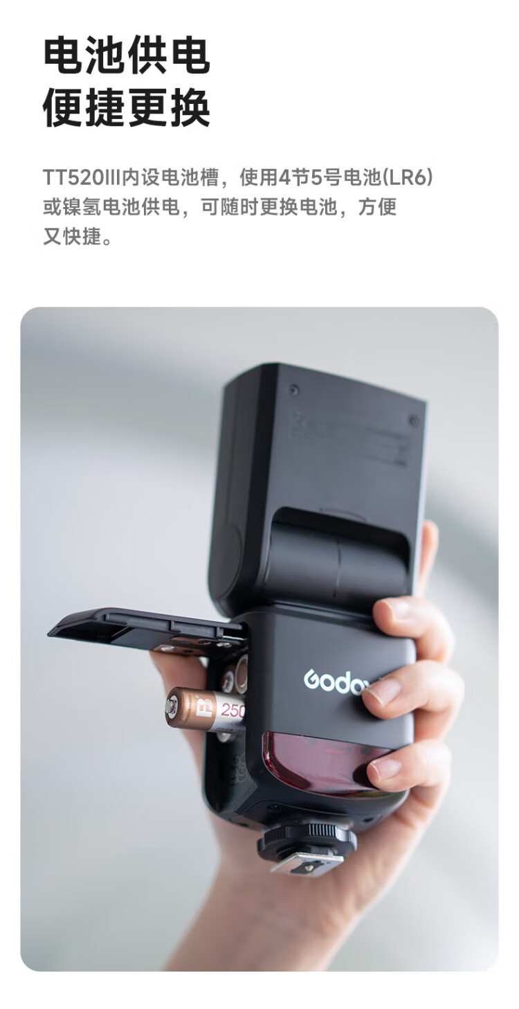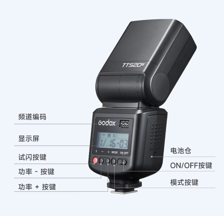 Godox TT520 third generation on-camera flash suitable for SLR mirrorless cameras, external photography light, off-camera portable hot shoe light, including flash trigger, TT520III third generation standard, no battery flash