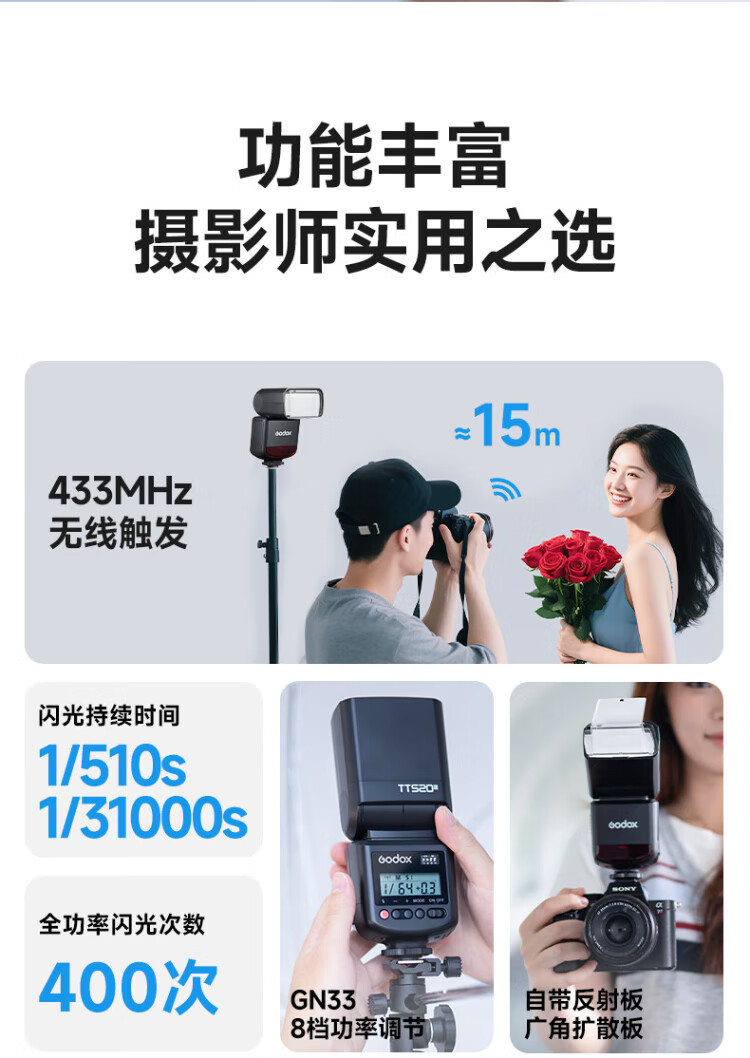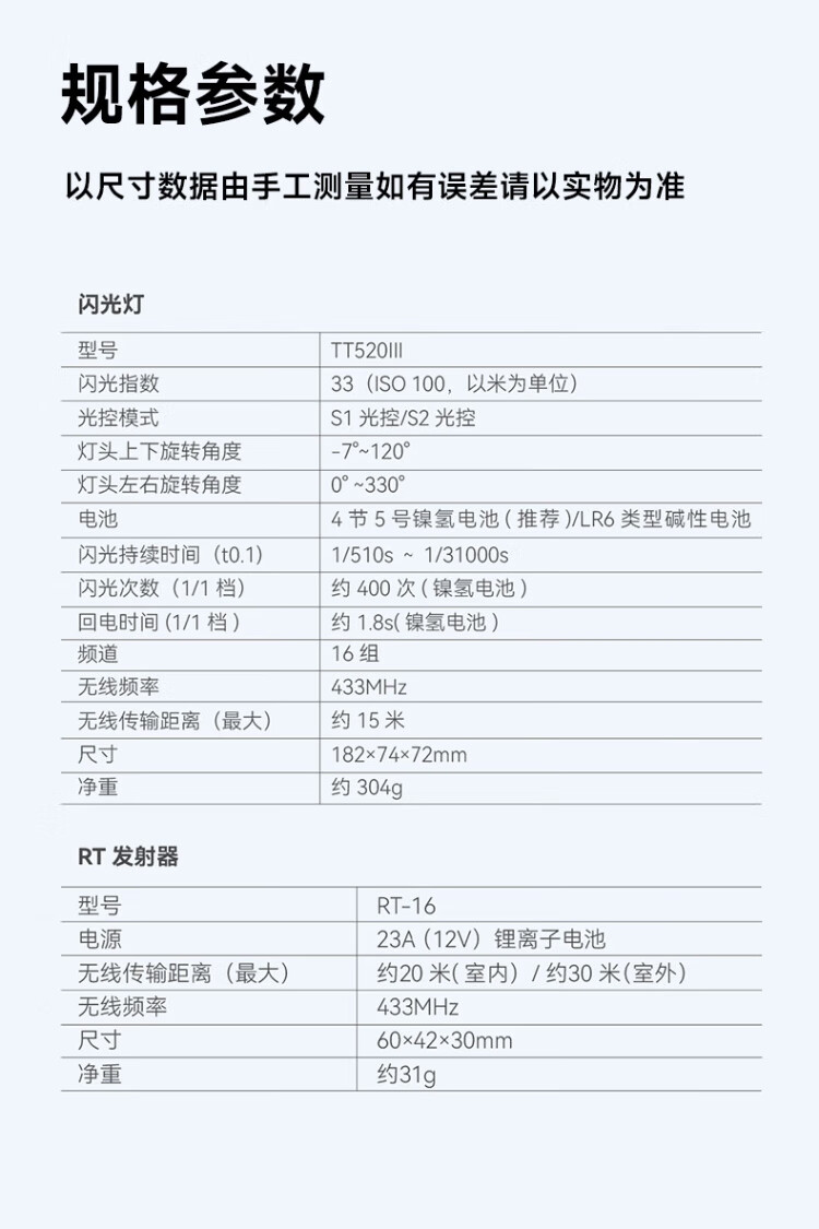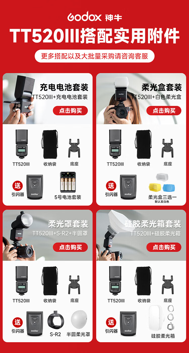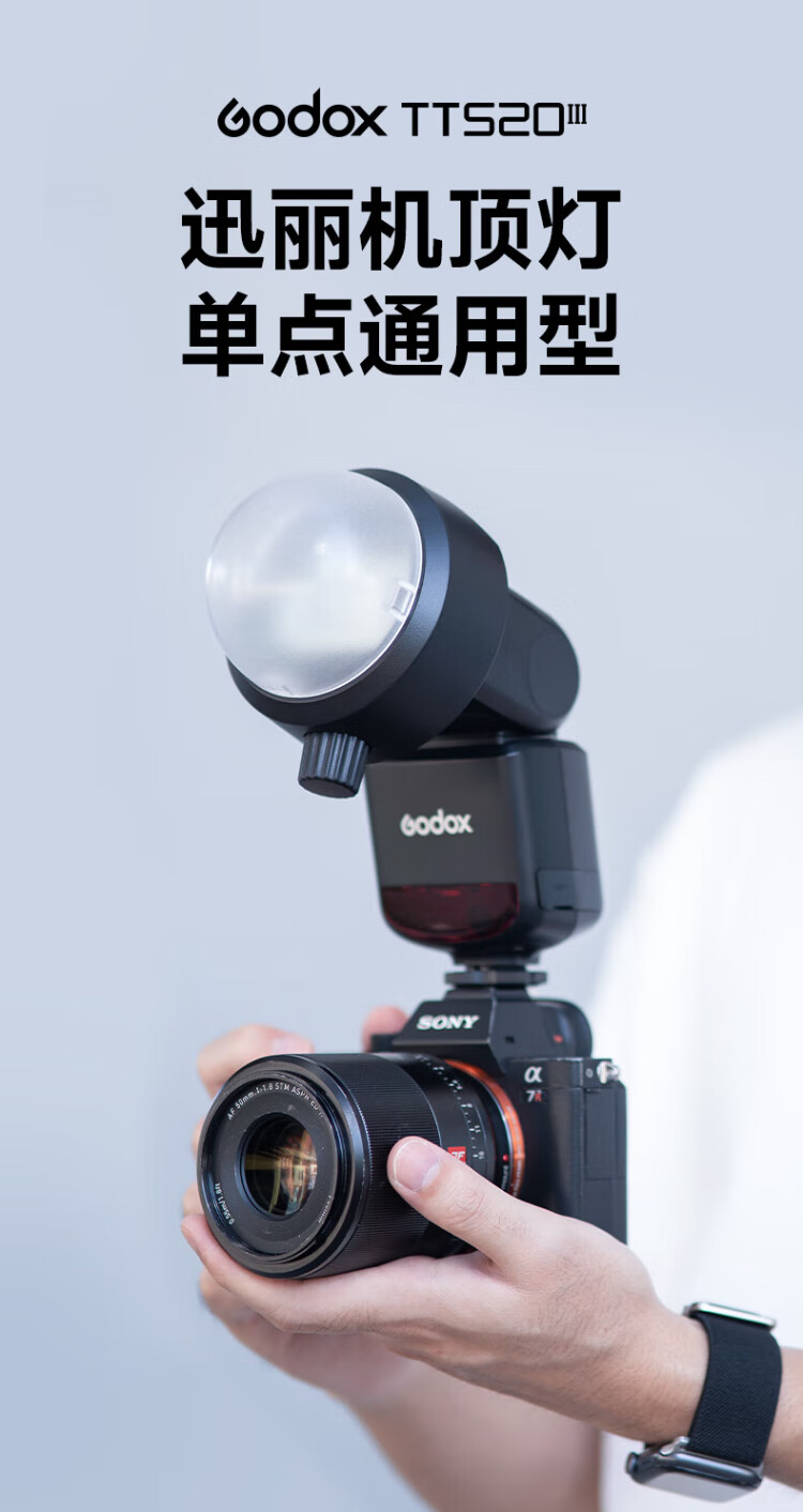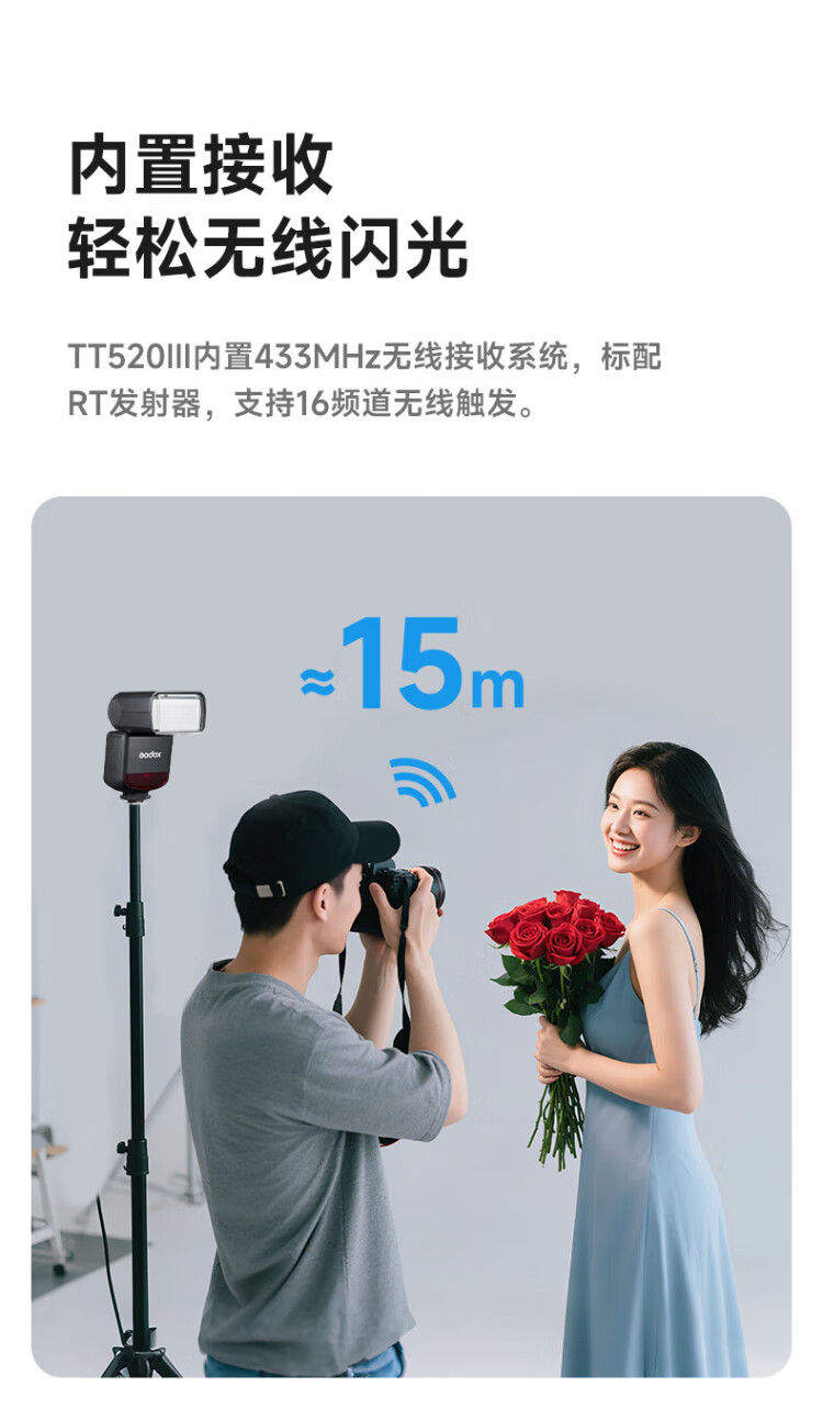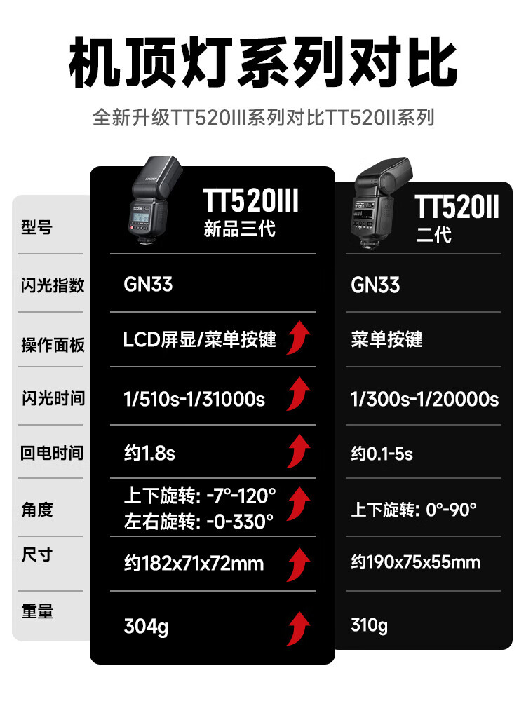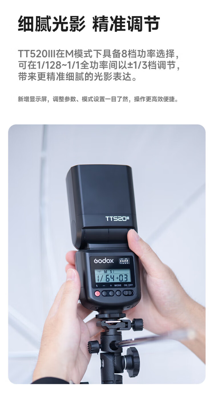 Godox TT520 third generation on-camera flash suitable for SLR mirrorless cameras, external photography light, off-camera portable hot shoe light, including flash trigger, TT520III third generation standard, no battery flash