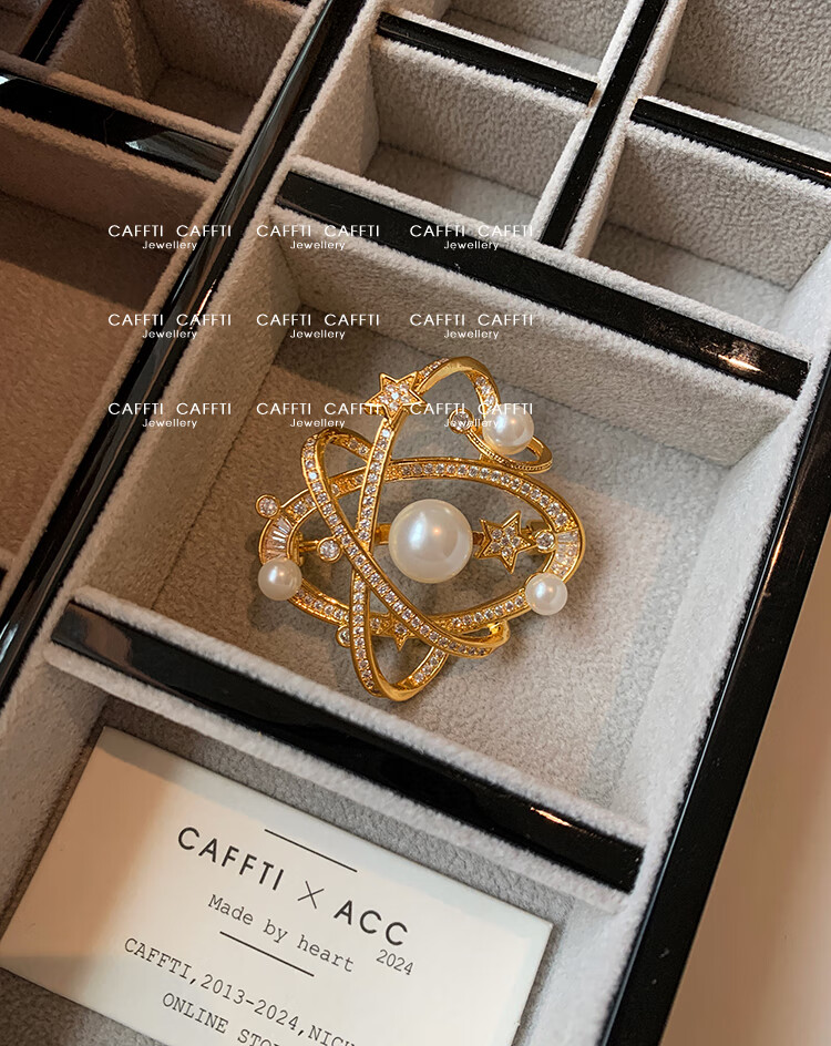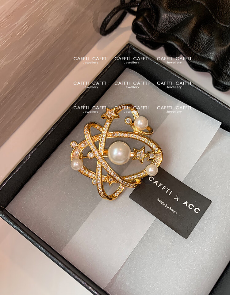 Jingkodi French Pearl Golden Planet Brooch Women's Corsage Design Niche Coat High-end Temperament Sweater Pin None
