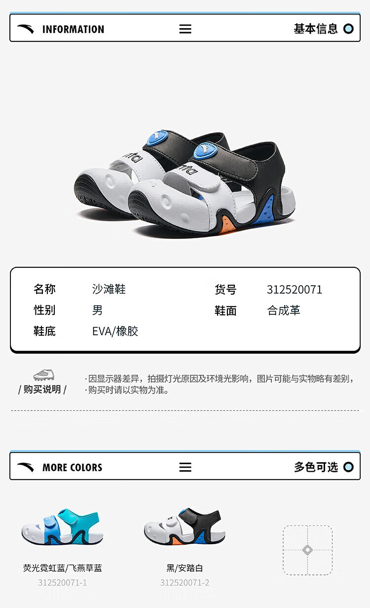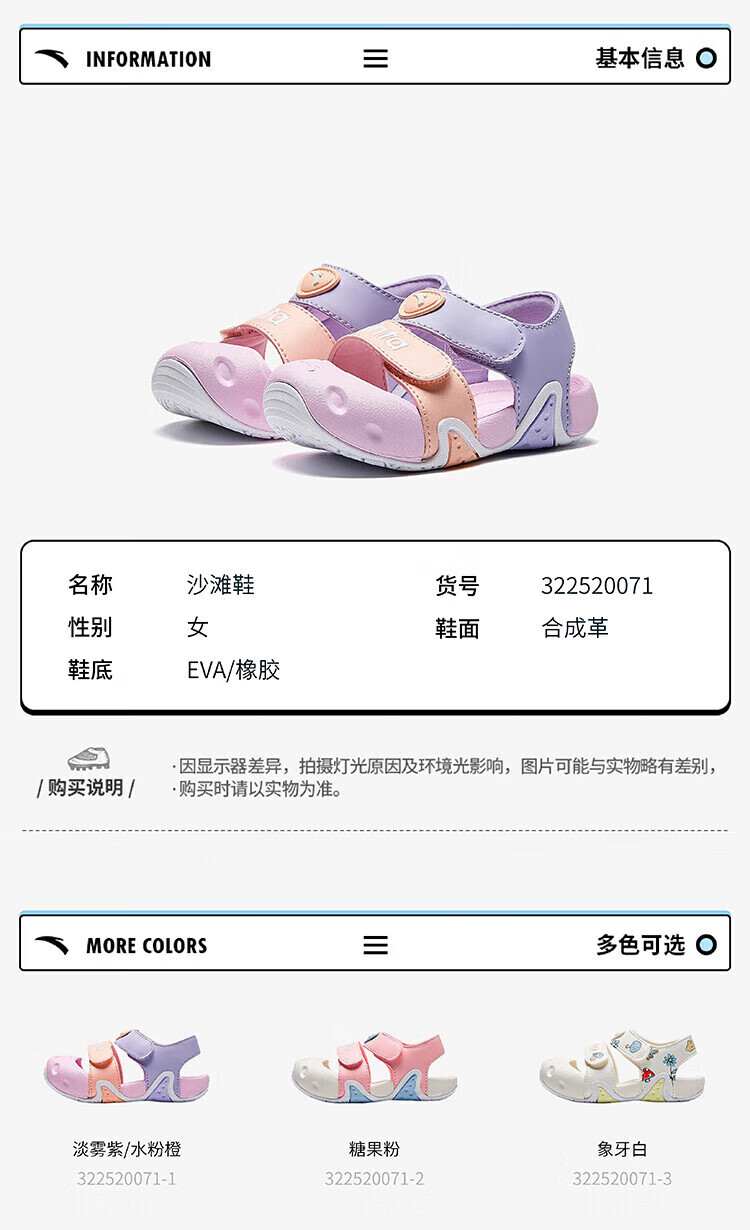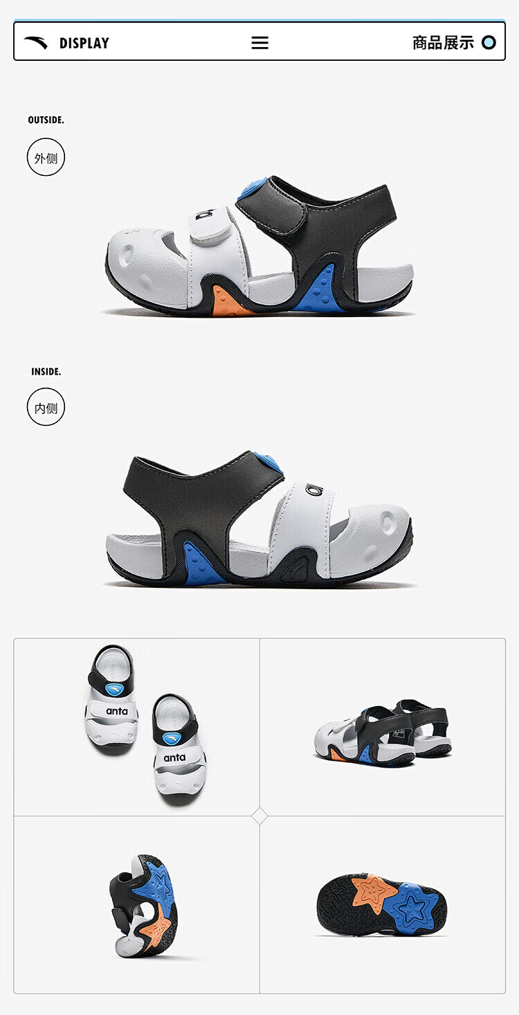 ANTA (ANTA) children's sandals, men's and women's shoes, new summer products, starfish elastic outdoor toe-toe beach shoes, women's model, ivory white-3 23