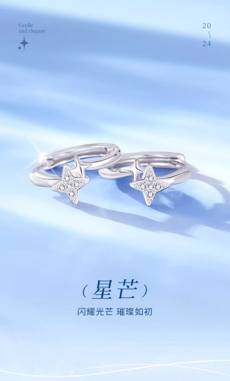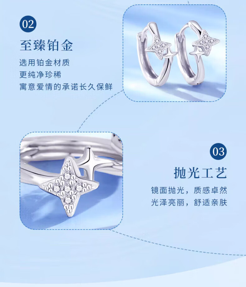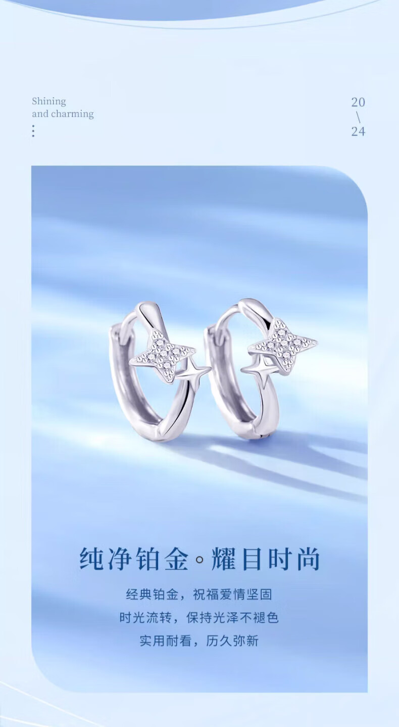 China Gold (CHINA GOLD) Star Platinum Earrings for Women PT950 Platinum Earrings Platinum Earrings Wedding and Birthday Gifts for Girlfriends and Wife Platinum Star Earrings About 2.1g
