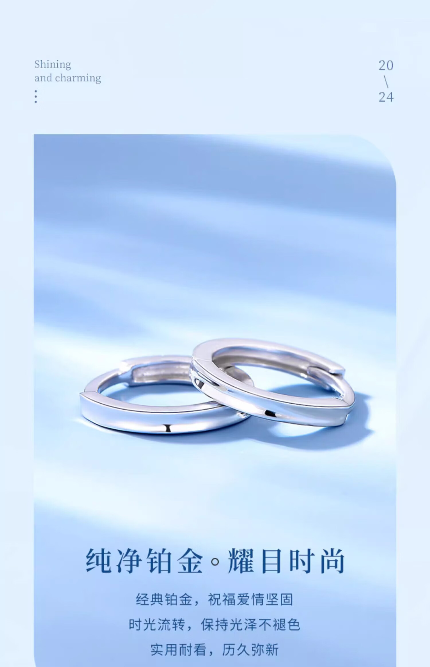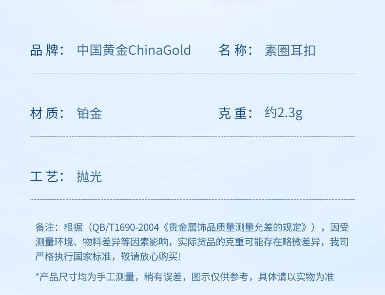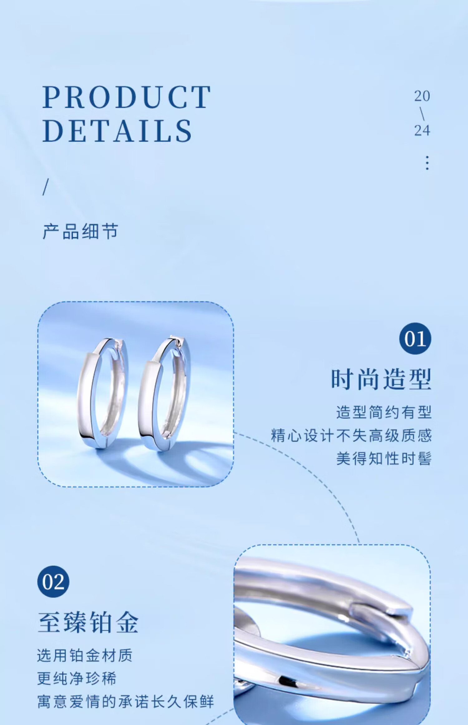 China Gold (CHINA GOLD) Smooth Plain Hoop Platinum Earrings for Women PT950 Platinum Earrings Plain Hoop Earrings Wedding and Birthday Gifts for Girlfriends PT950 Platinum Smooth Plain Hoop Earrings About 2.1g