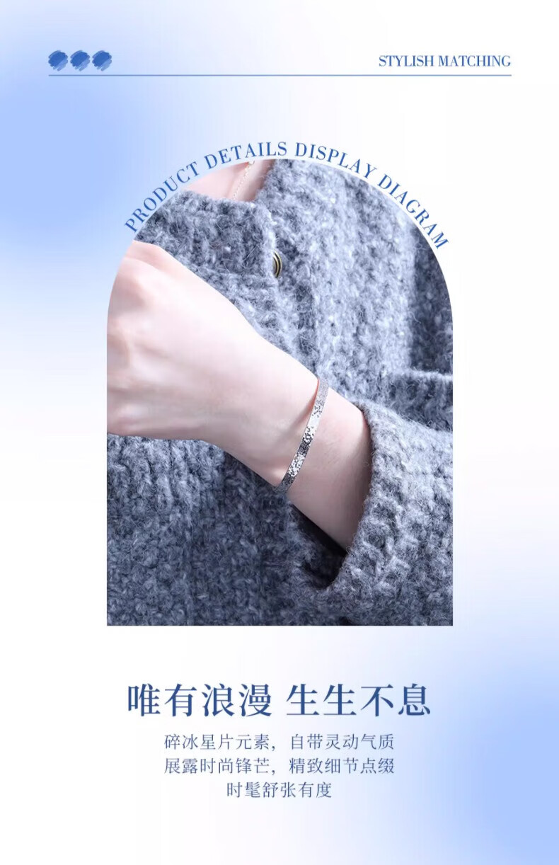 CHINA GOLD PT950 Platinum Crushed Ice Bracelet Women's New Versatile Simple Bracelet Wedding and Birthday Gift for Girlfriend 54 Rings PT950 Platinum Crushed Ice Bracelet About 16.1g